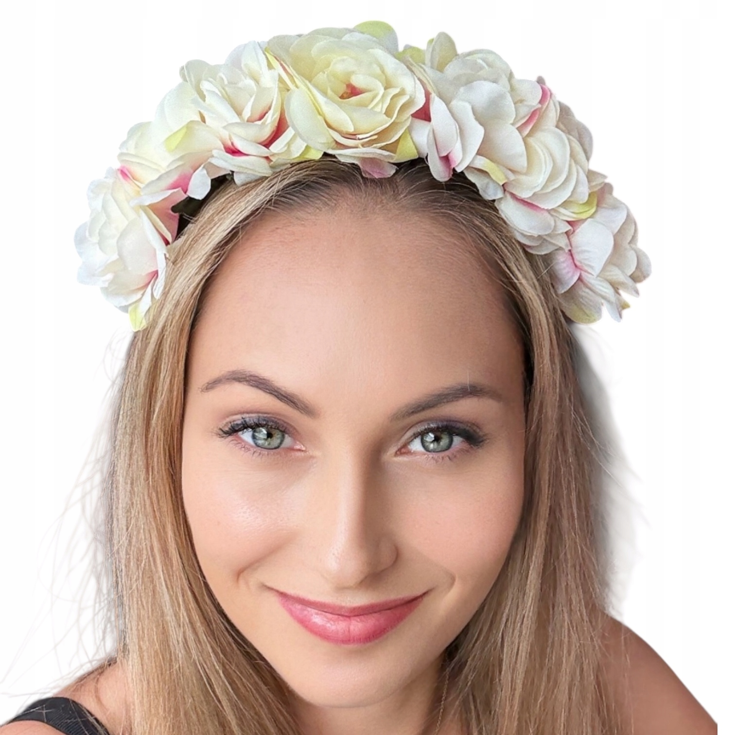 Delikatna, a zarazem efektowna opaska kwiatowa w odcieniach kremu z subtelnym różem to idealny dodatek na wyjątkowe okazje. Wykonana z wysokiej jakości tkaninowych kwiatów – przypomina romantyczny wianek, ale w wygodnej formie opaski.
