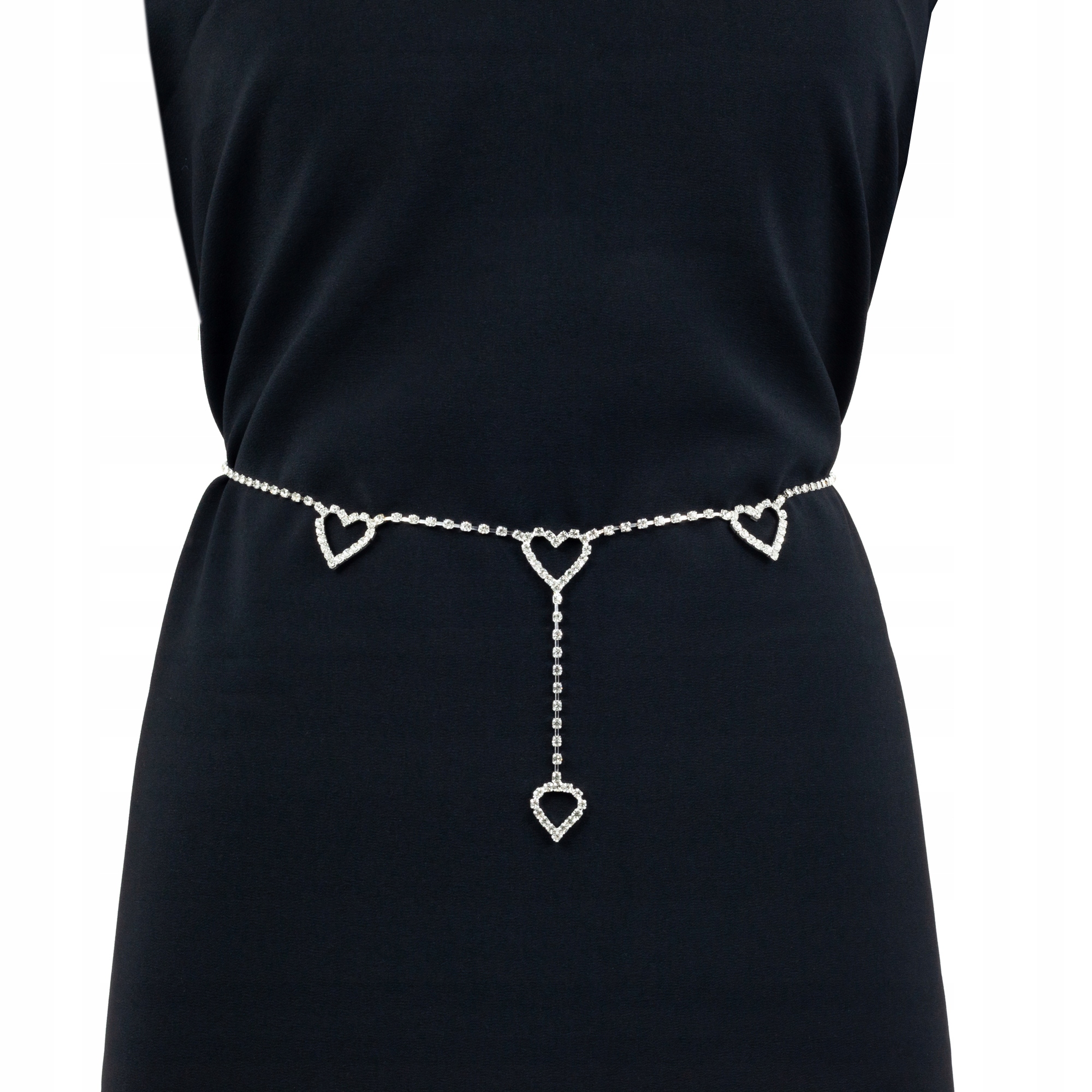 PASEK do sukienki tuniki srebrne serduszka z cyrkoniami na łańcuszku