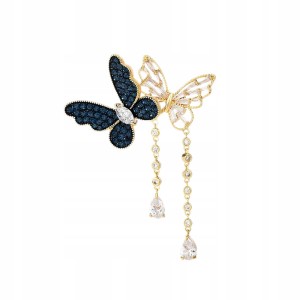 Przecudna broszka w kształcie złączonych motyli z łańcuszkami, zdobiona cyrkoniami i pozłacana 14K złotem