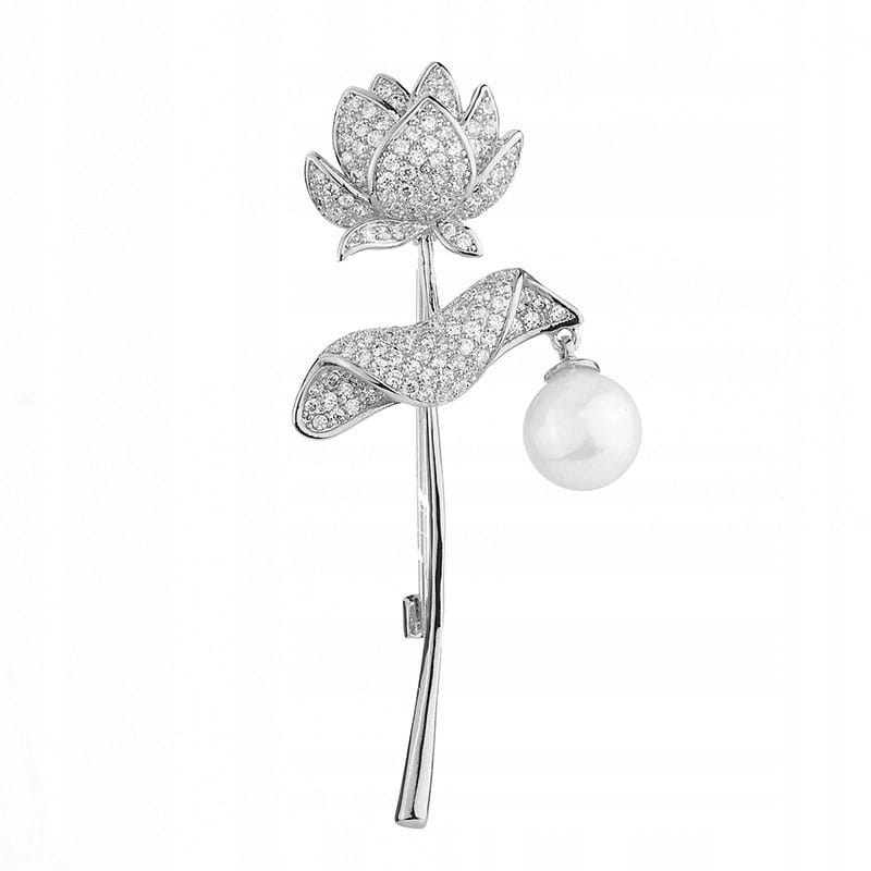 PINETS Broszka srebrna Róża pozłacana Białe złoto