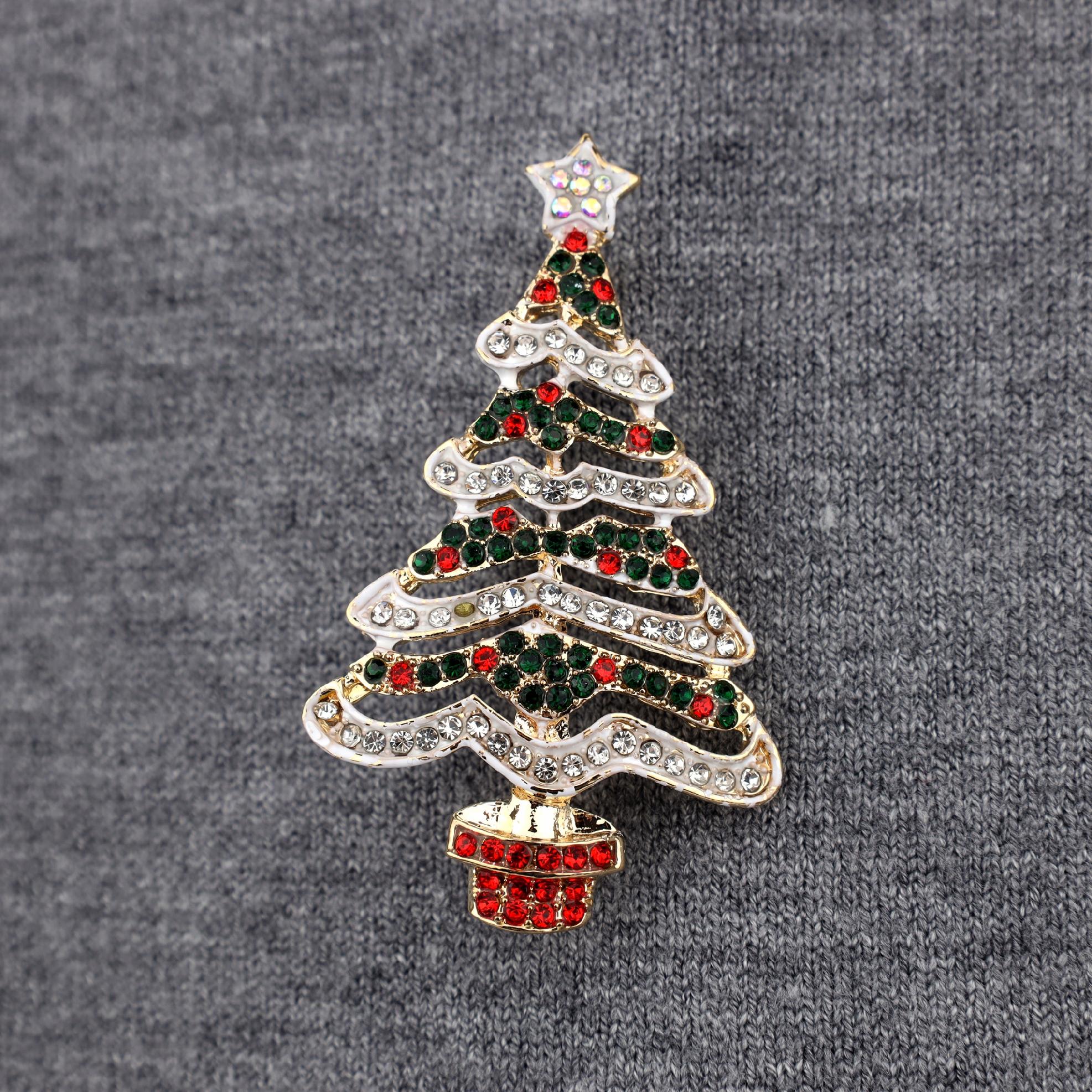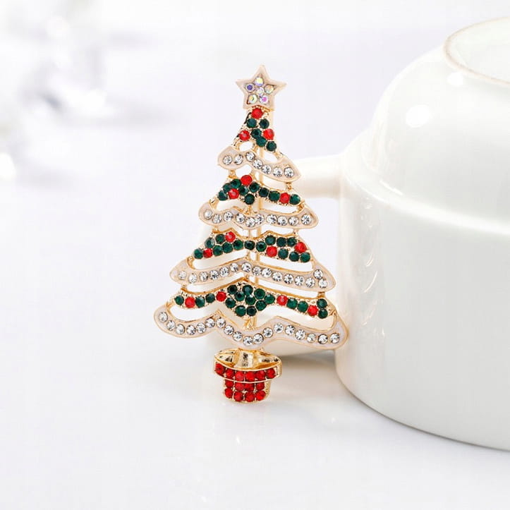 Przecudna broszka w kształcie świątecznej choinki z gwiazdą