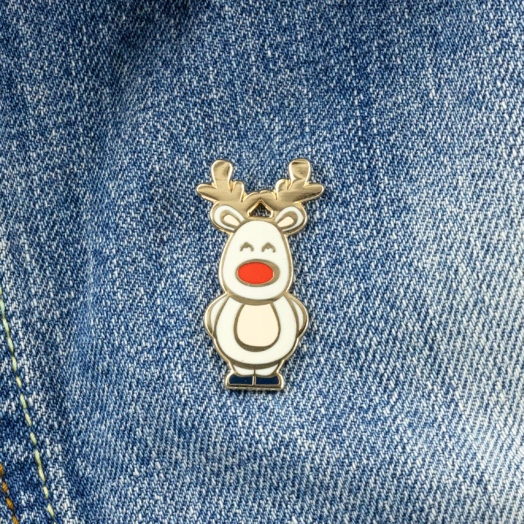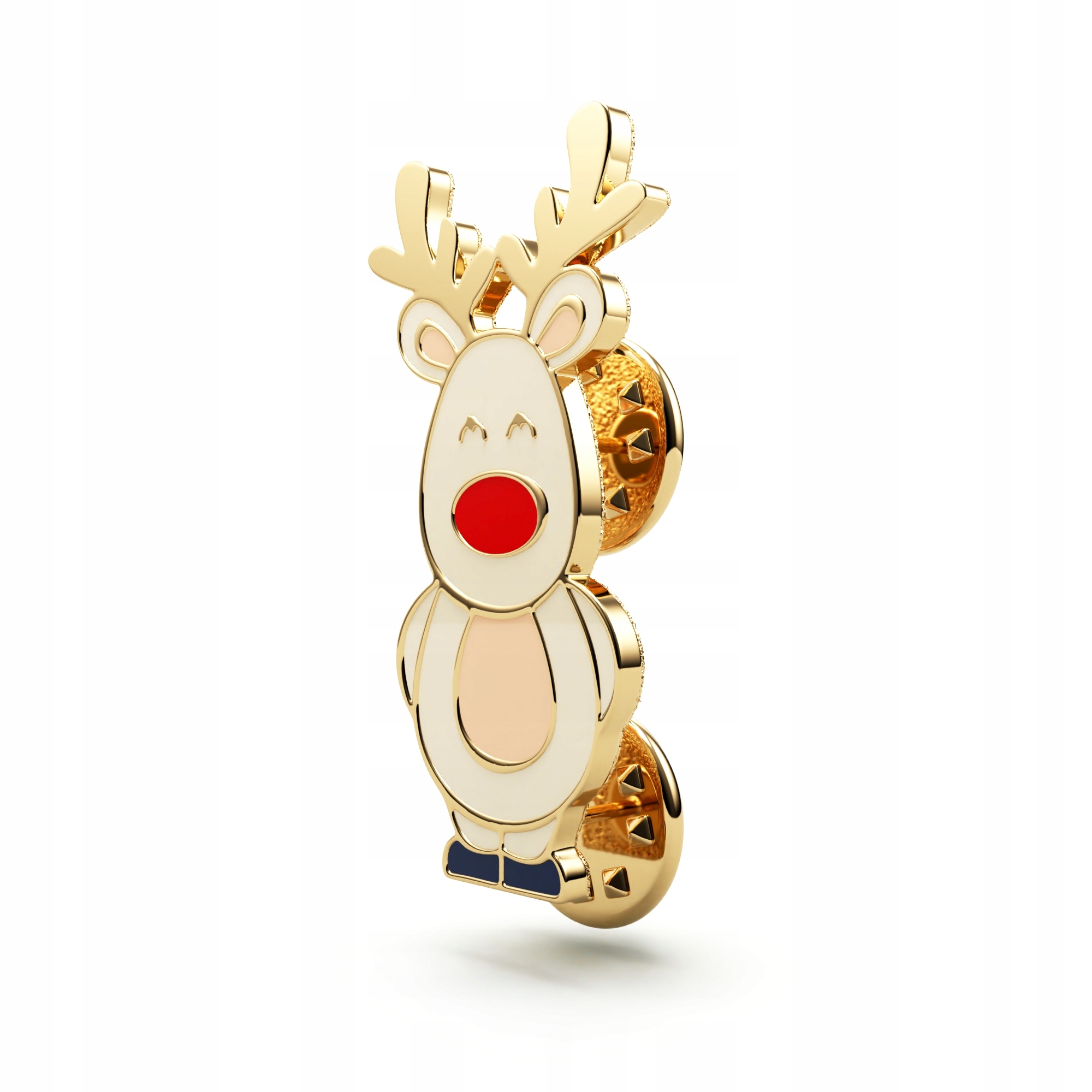 Urocza przypinka z motywem świątecznego reniferka wykończona 14-karatowym złotem