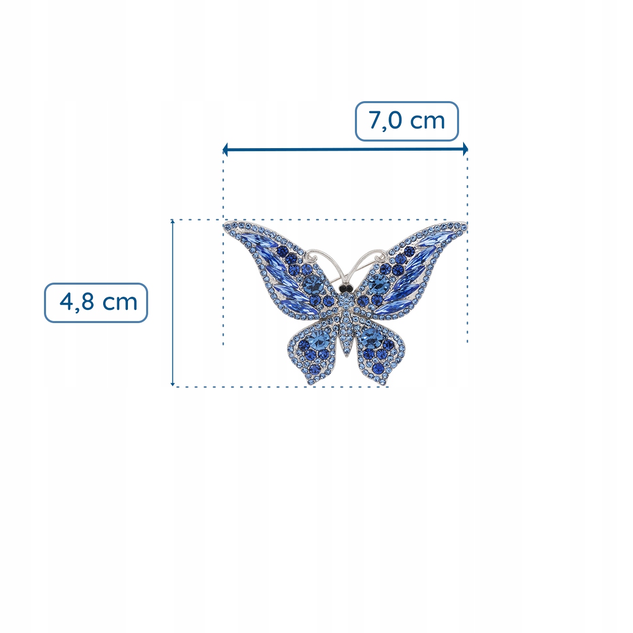Błyszcząca, starannie zdobiona niebieskimi kryształkami, zachwyca detalami i precyzyjnym wykończeniem. Idealna jako efektowny dodatek do wieczorowej stylizacji, marynarki, sukienki czy płaszcza.