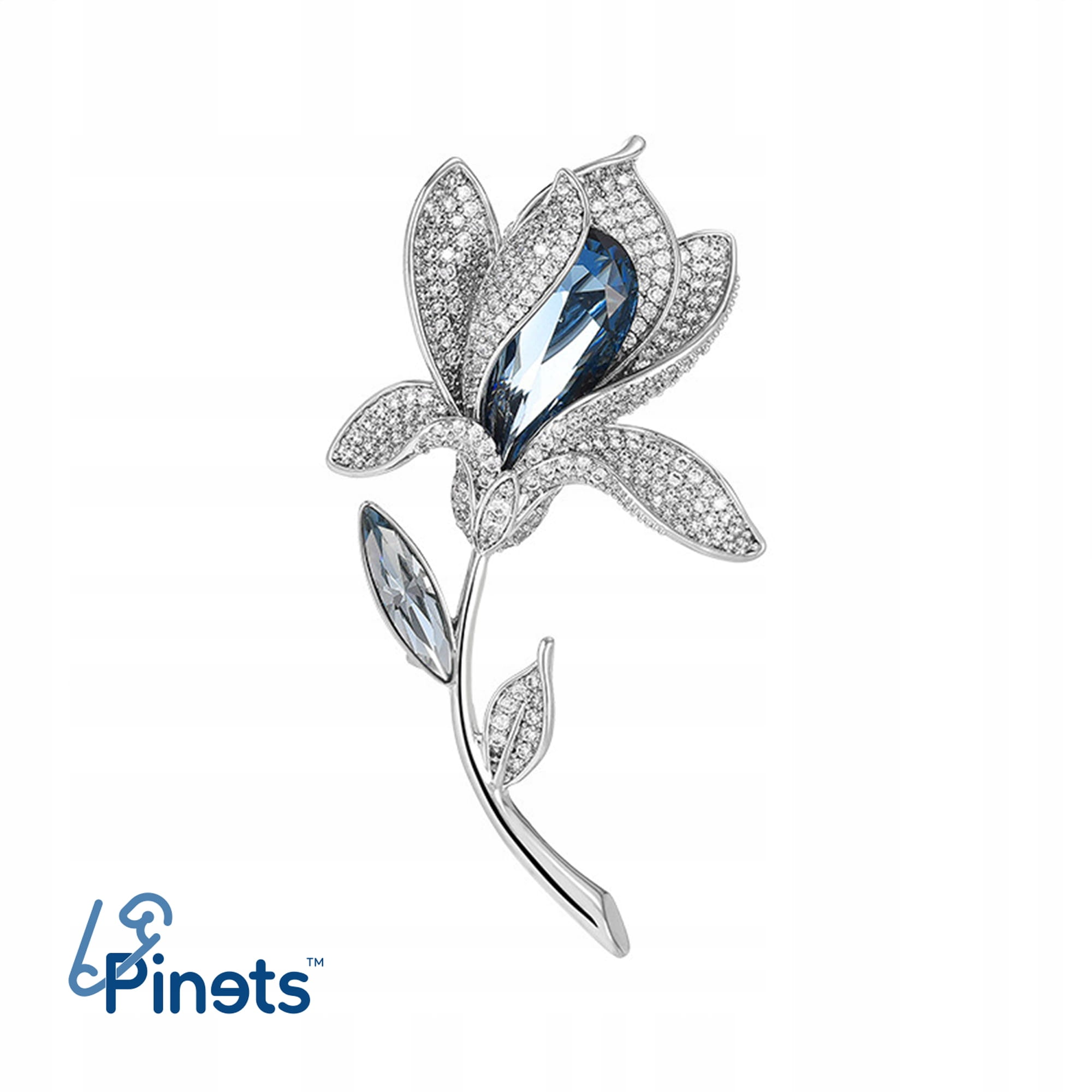 PINETS Piękna Srebrna Broszka KWIAT z niebieską cyrkonią