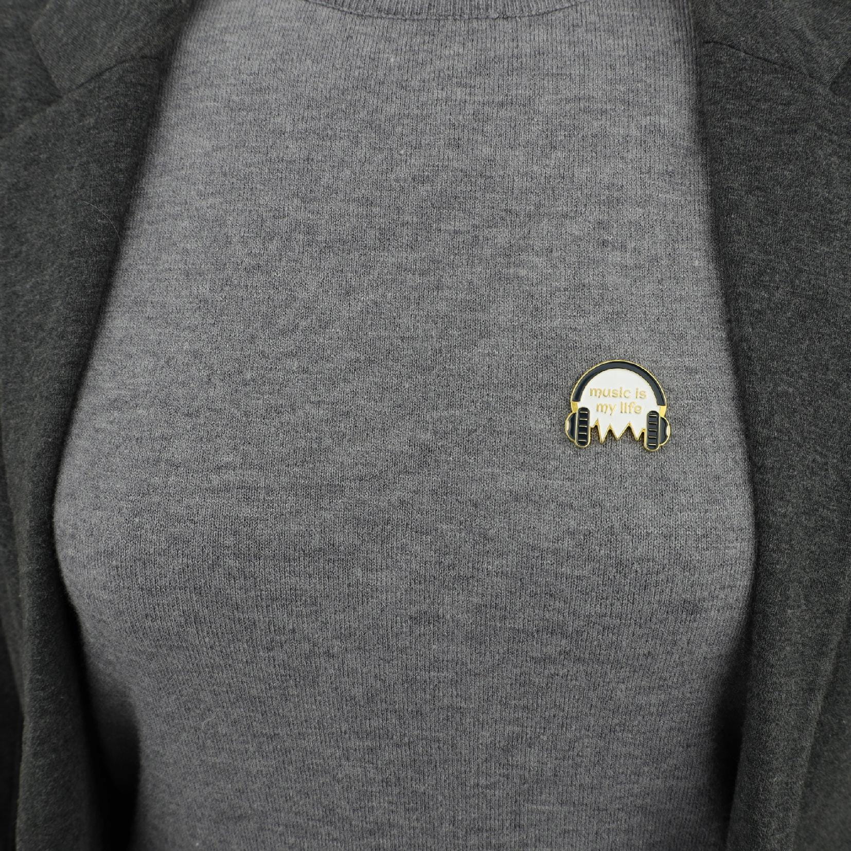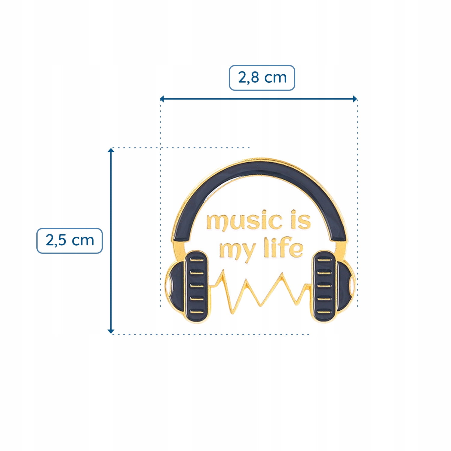 Przeurocza przypinka ze słuchawkami i napisem Music Is My Life