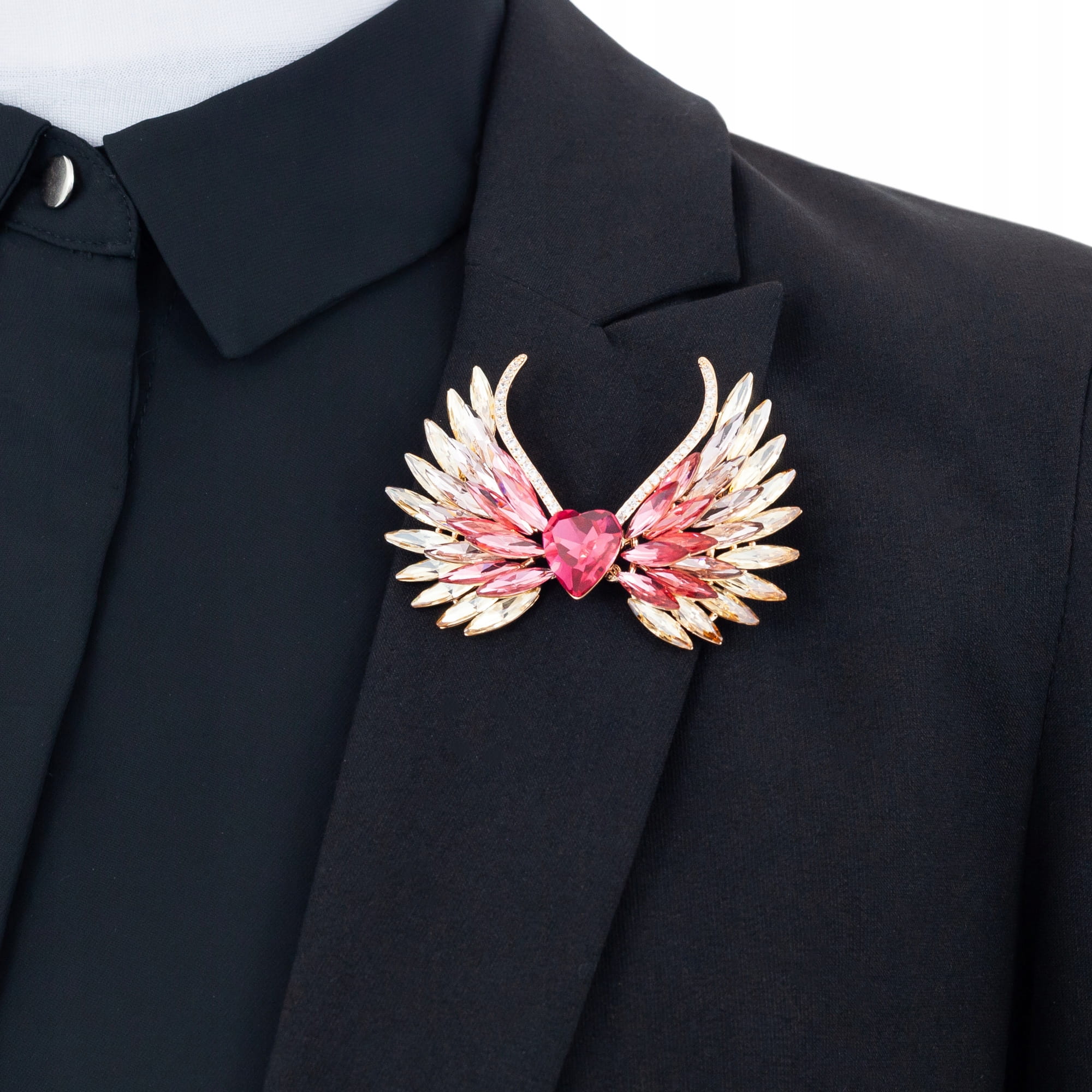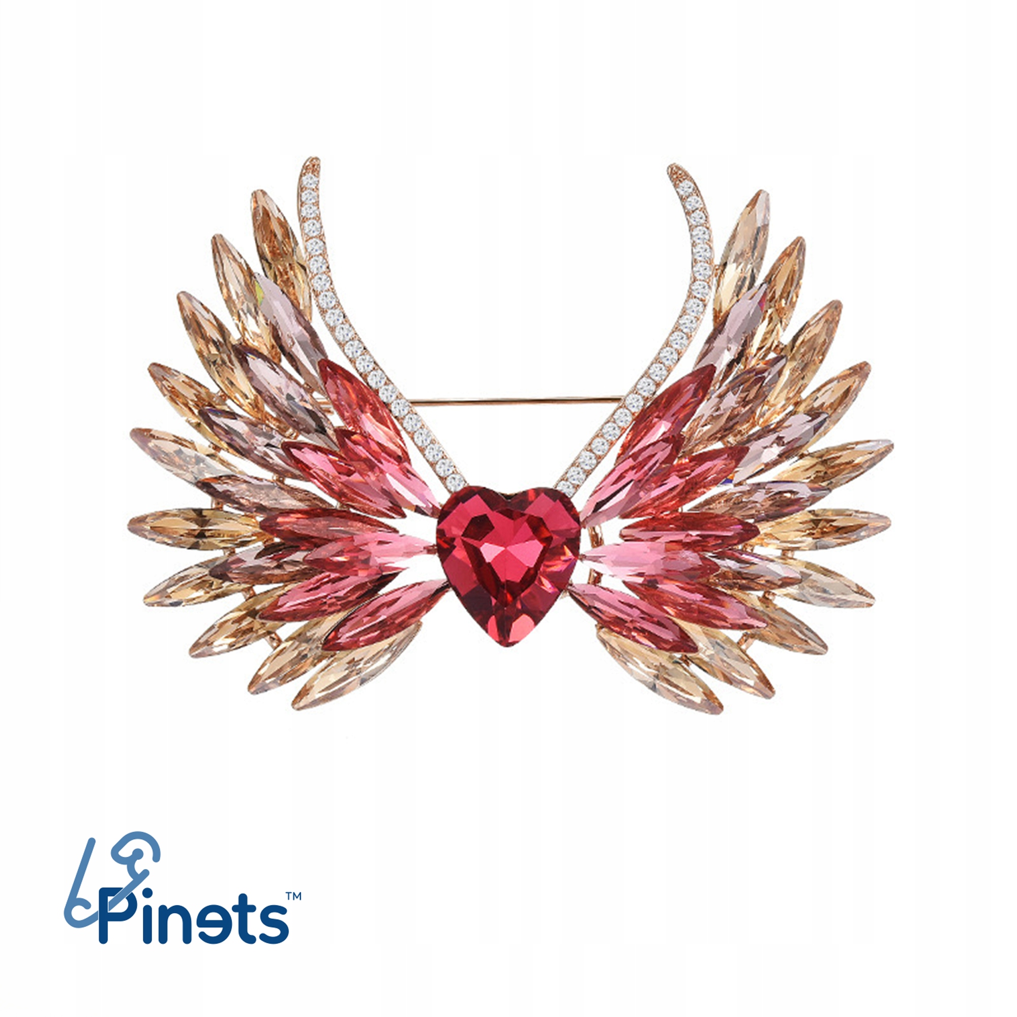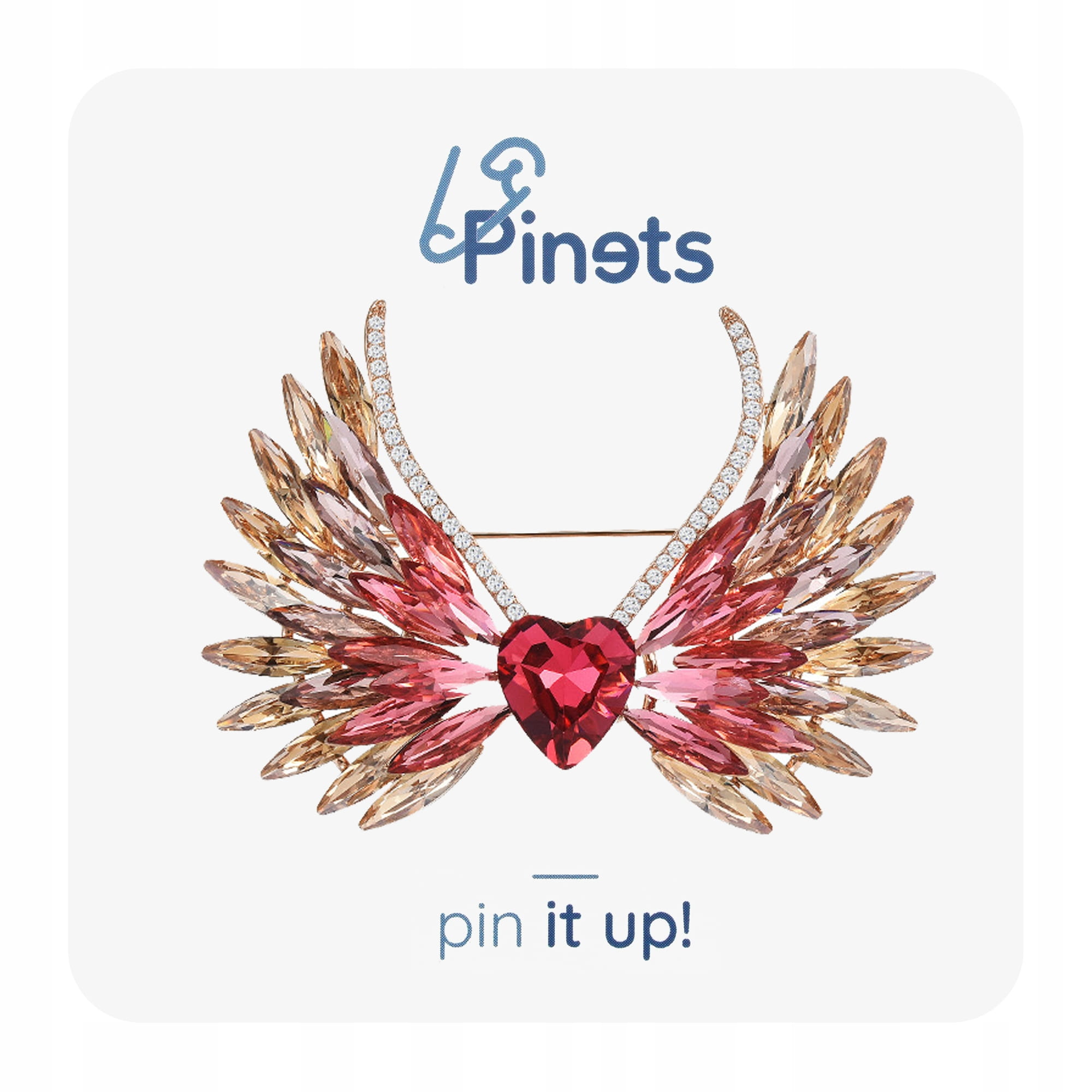 PINETS Spektakularna Broszka z kryształem austriackim Skrzydła SERCE Złota