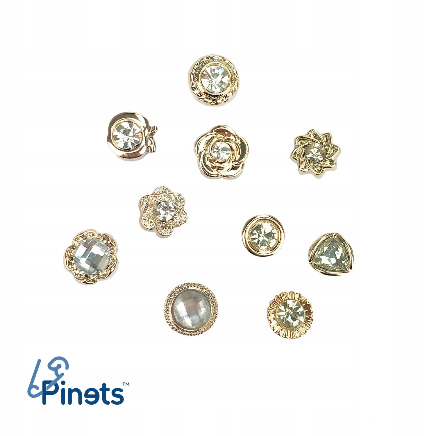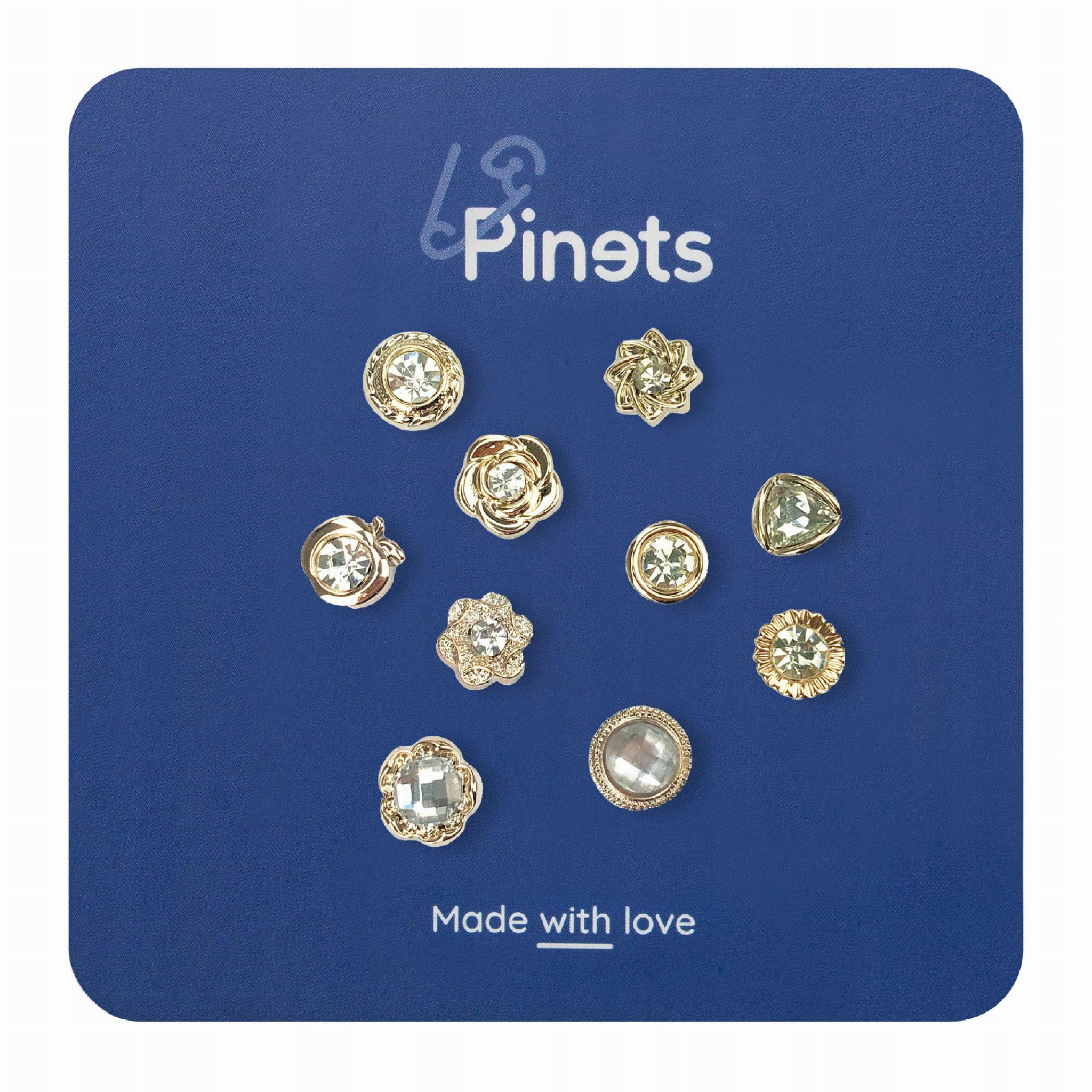 PINETS Zestaw 10 szt Przypinek złote cyrkonie