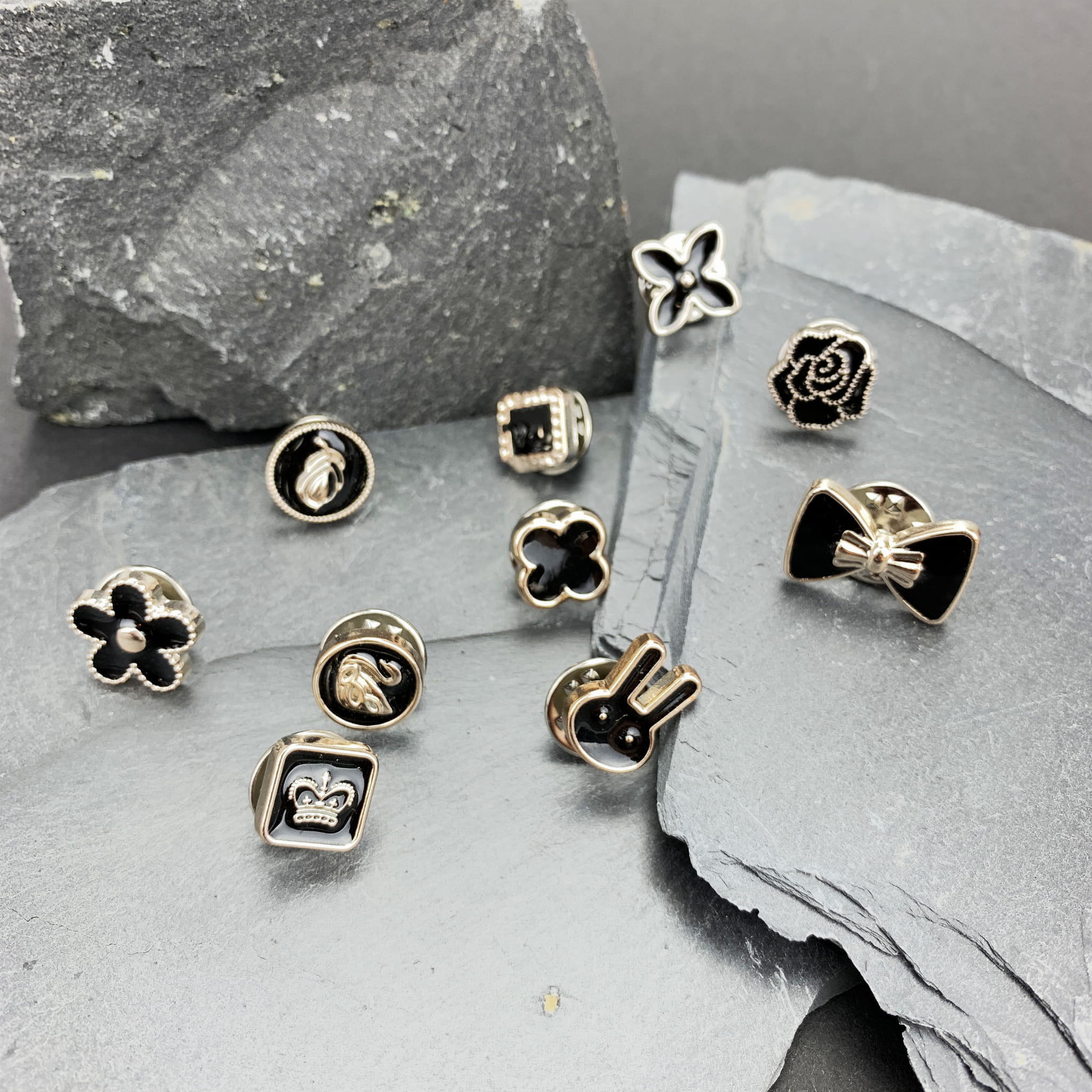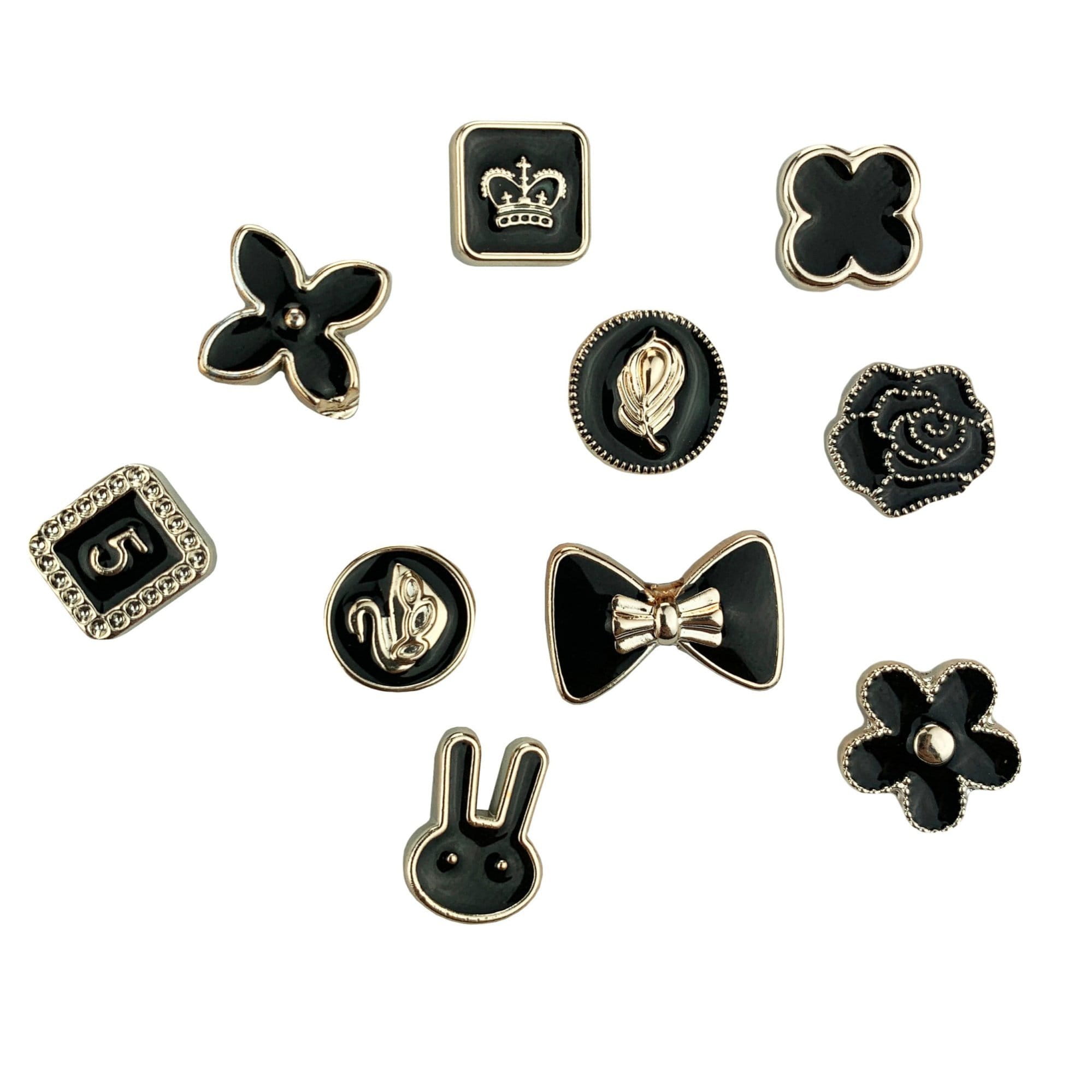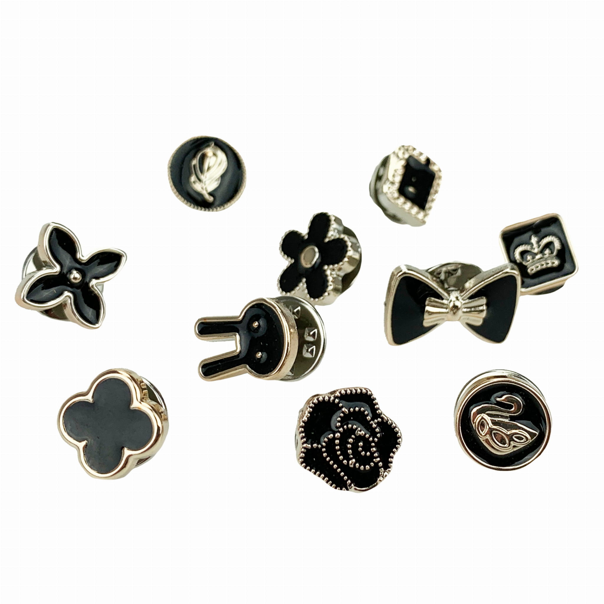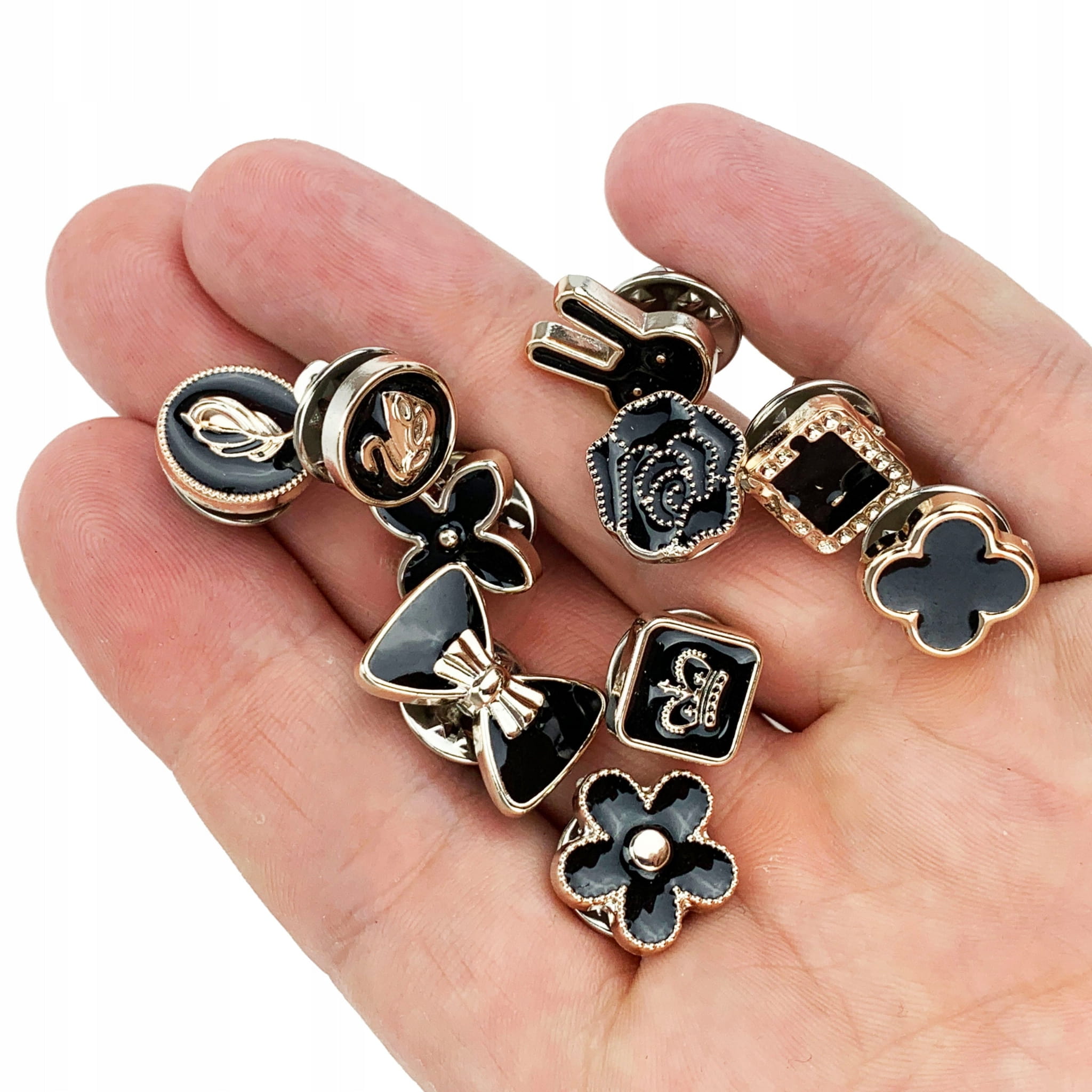 PINETS Zestaw 10 szt przypinek czarne złote Kwiaty