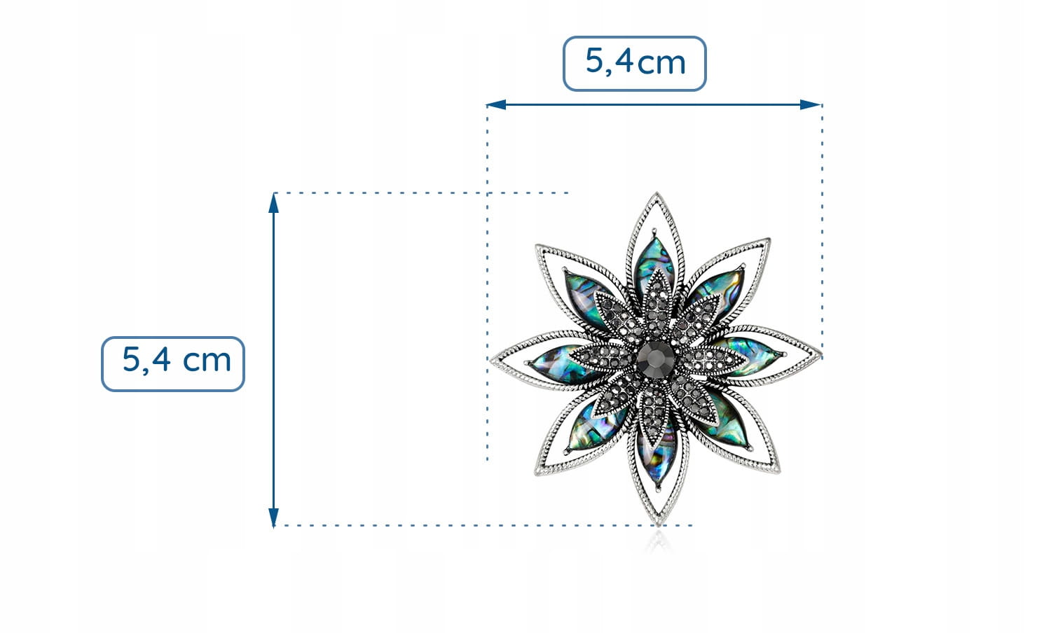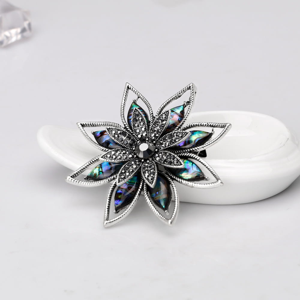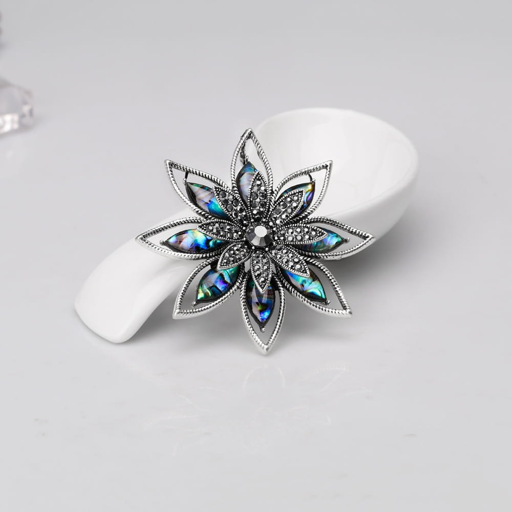 Broszkę zdobi masa perłowa, która stanowi szykowne dopełnienie całości.