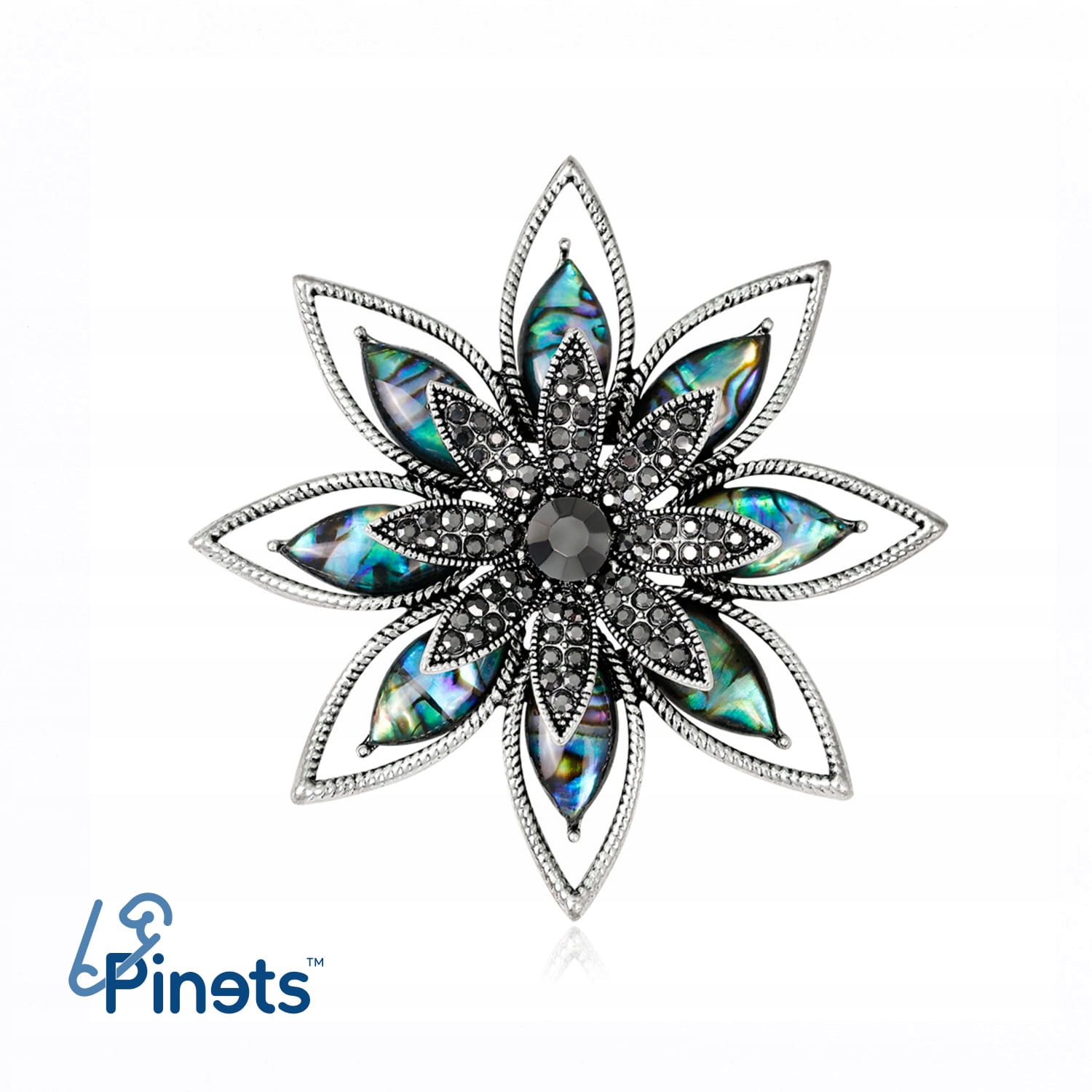PINETS broszka KWIAT masa perłowa Cyrkonie Srebrna