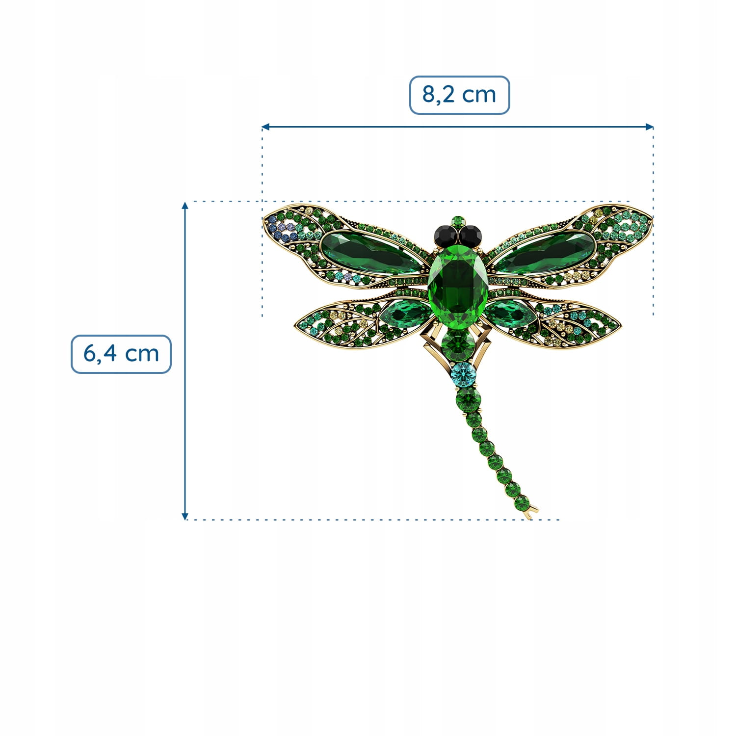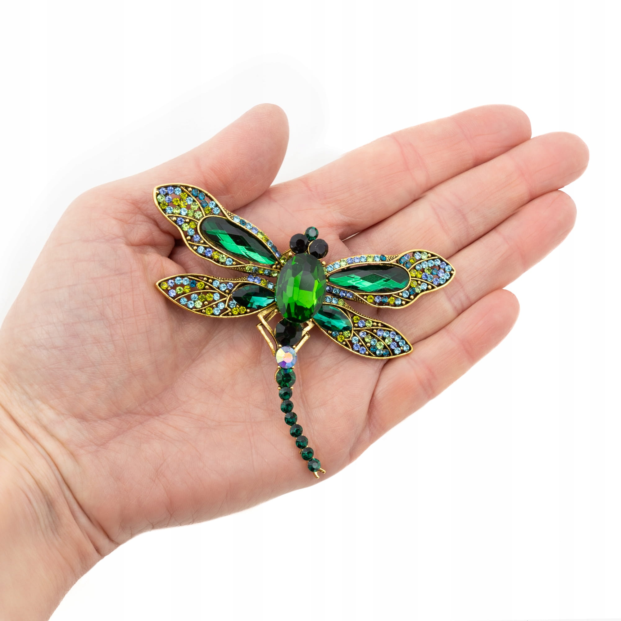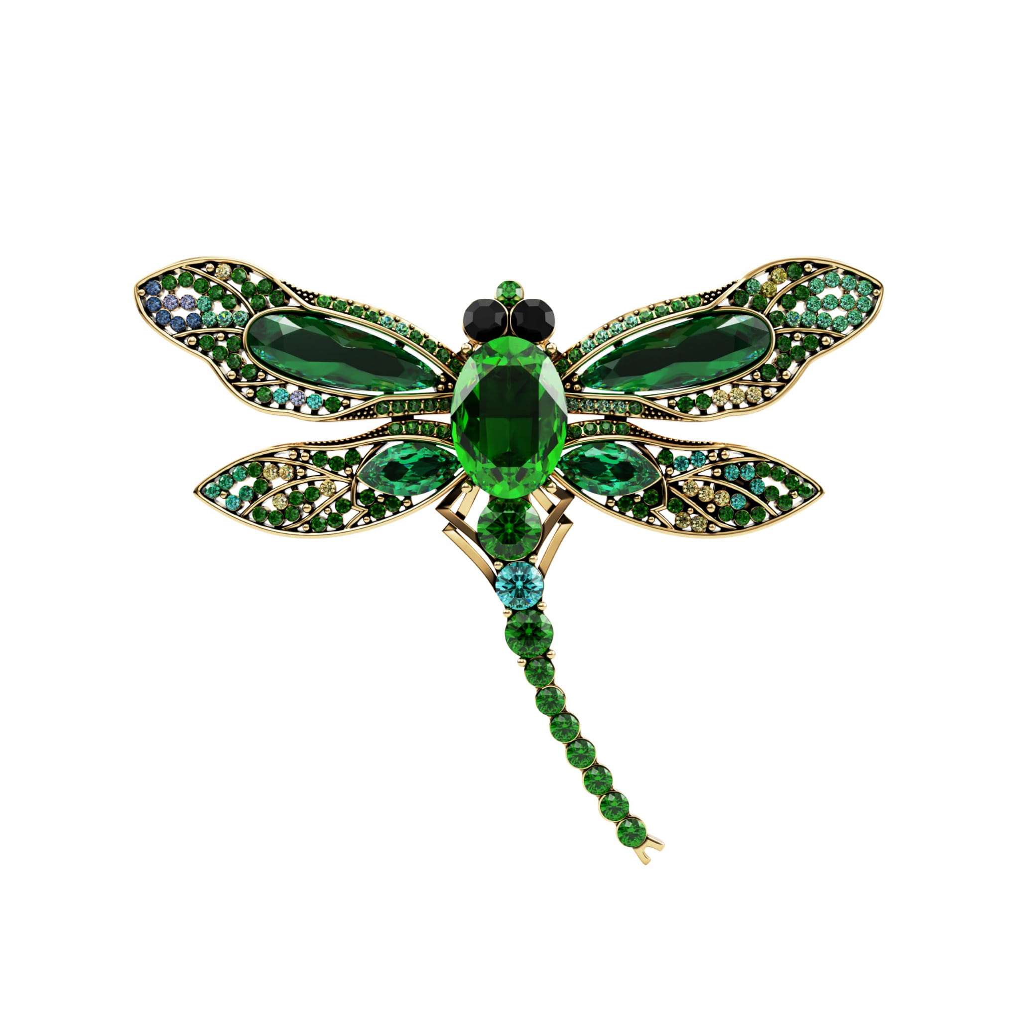 Przecudna broszka z motywem zielonej ważki wysadzanej cyrkoniami
