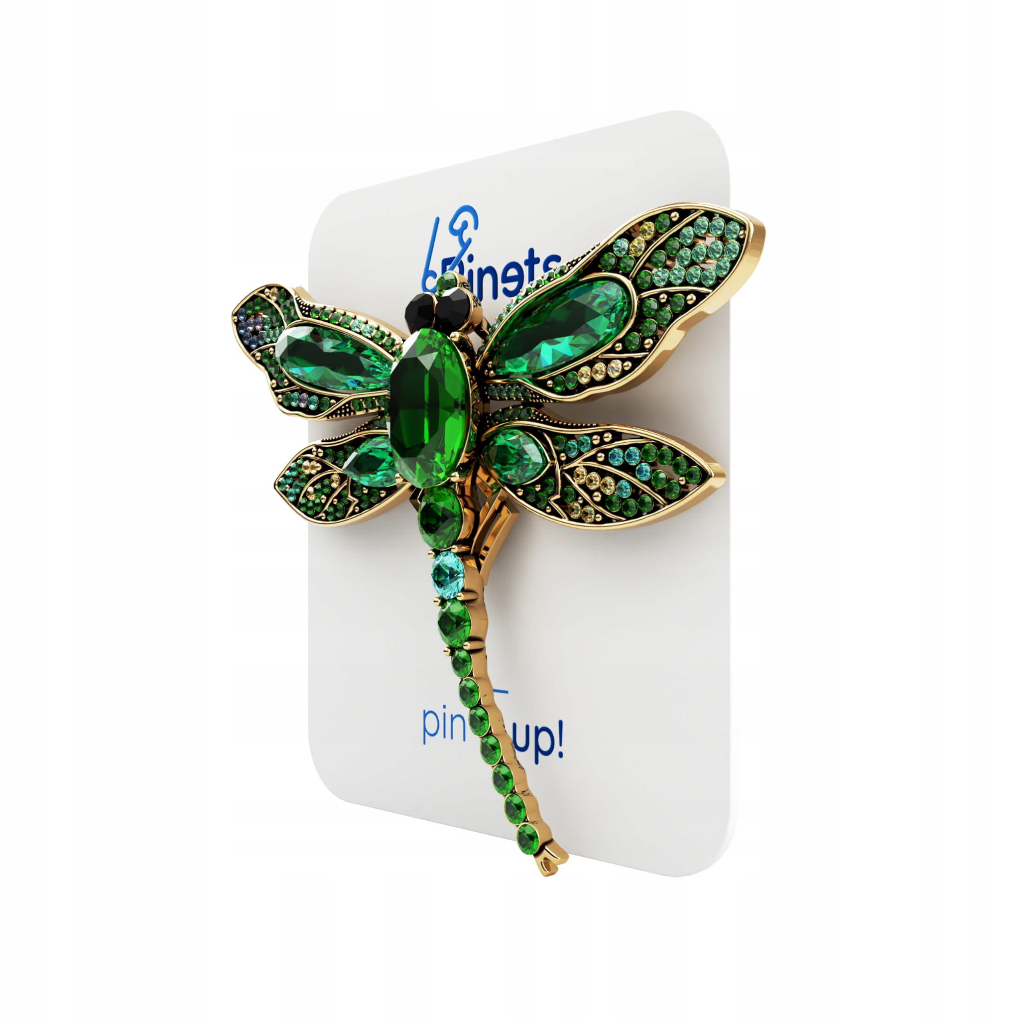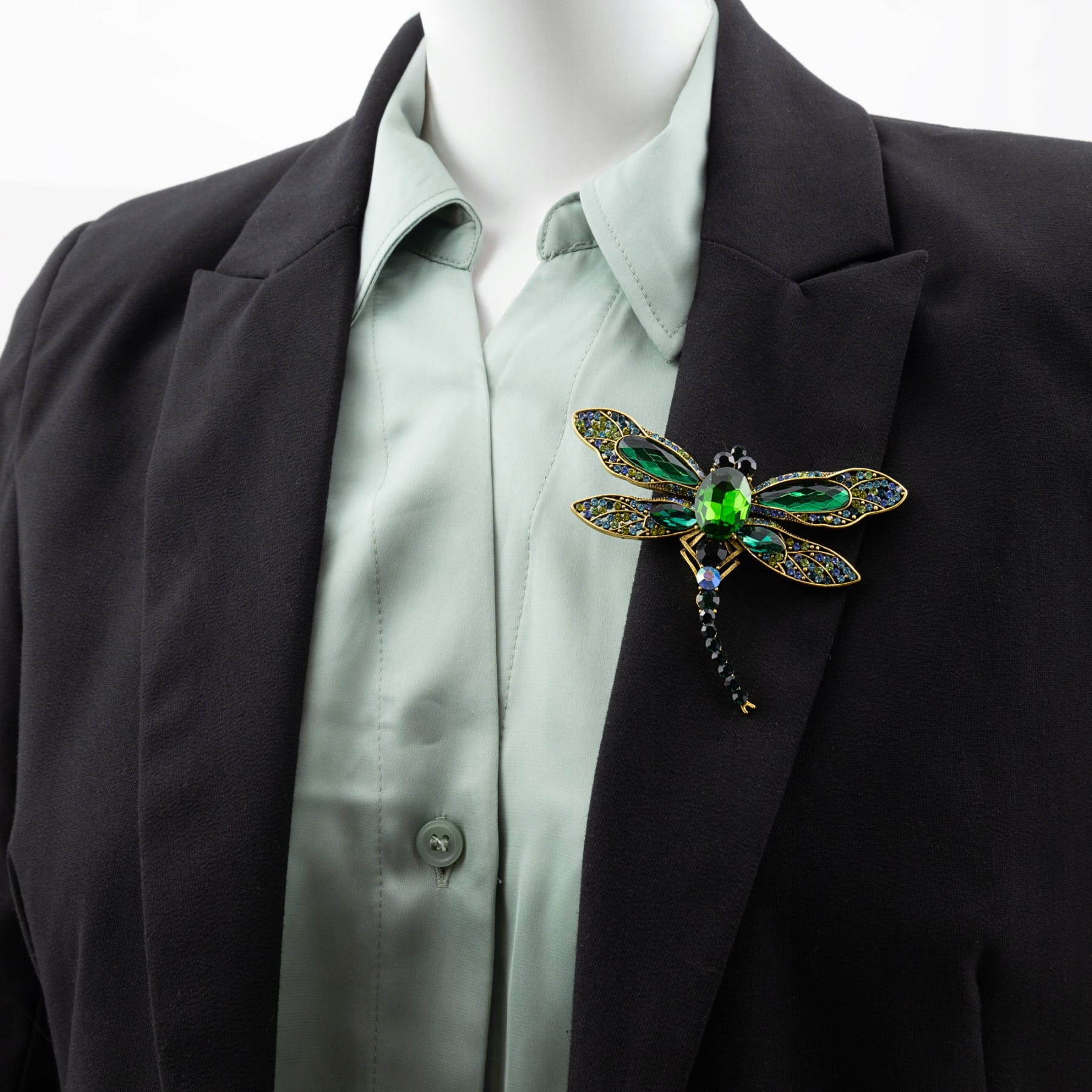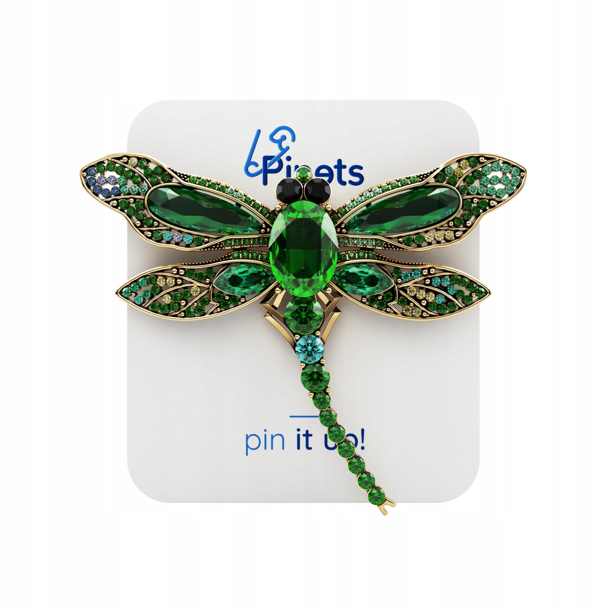 Przecudna broszka z motywem zielonej ważki wysadzanej cyrkoniami