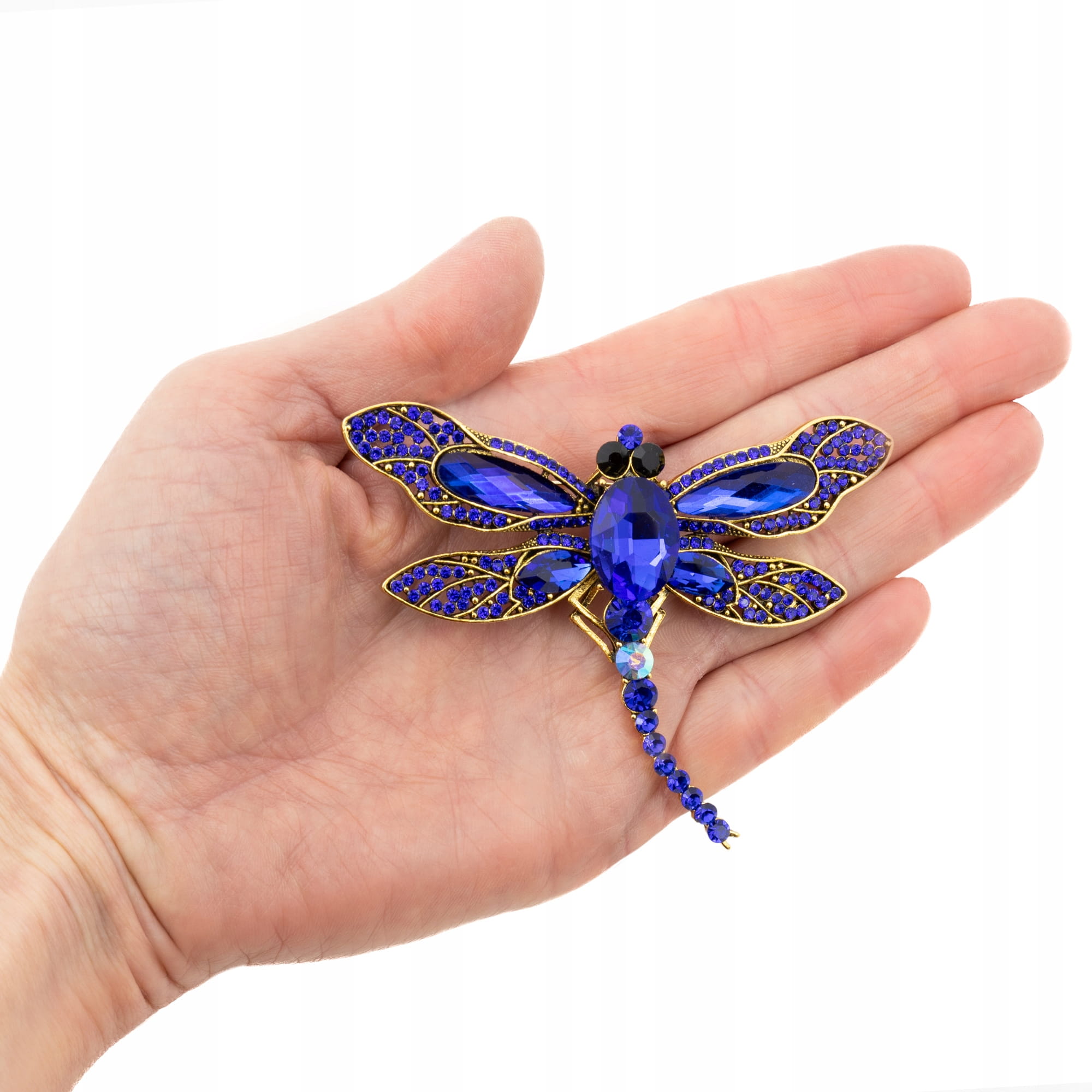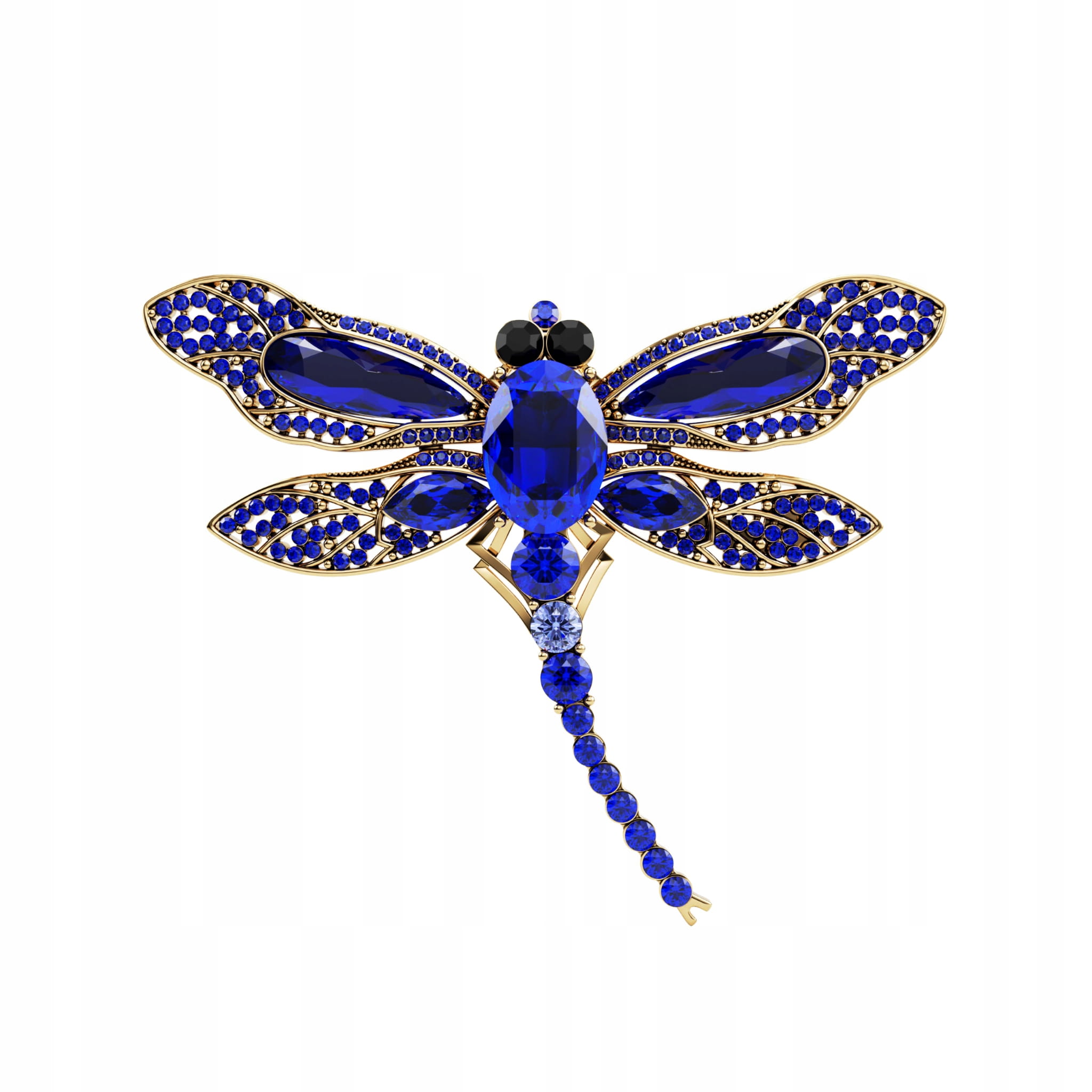 Przecudna broszka z motywem niebieskiej ważki wysadzanej cyrkoniami.