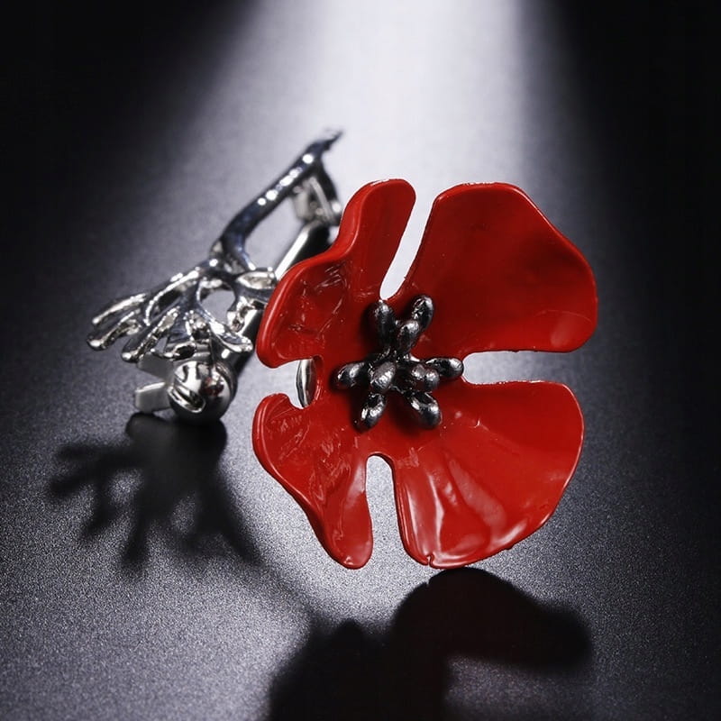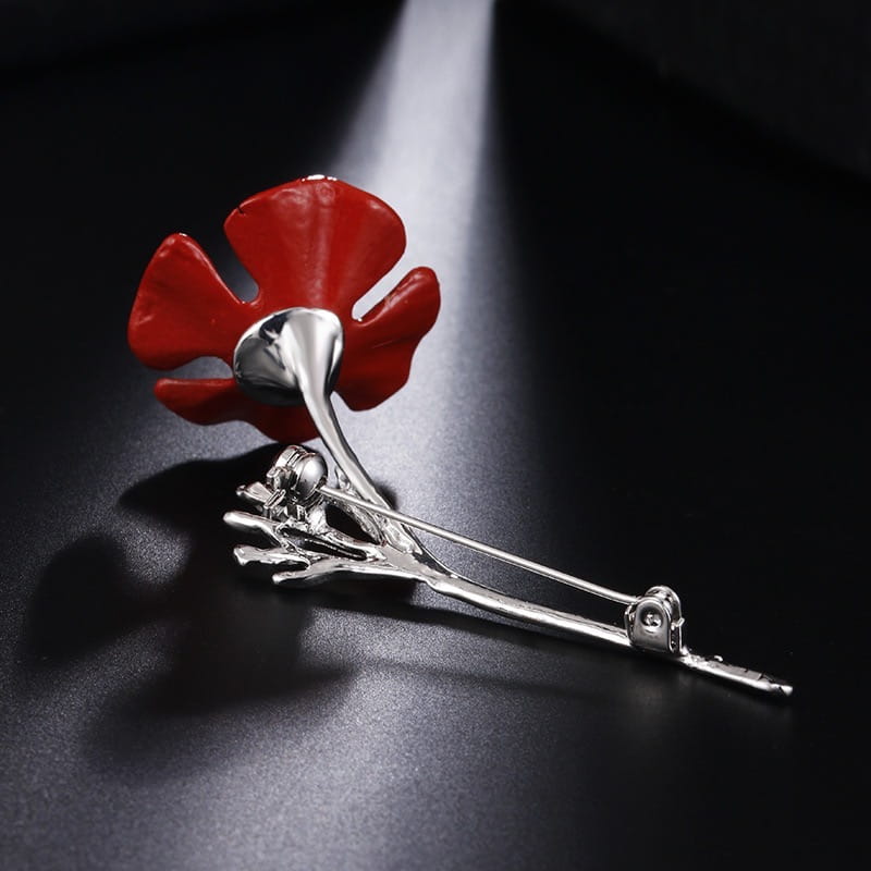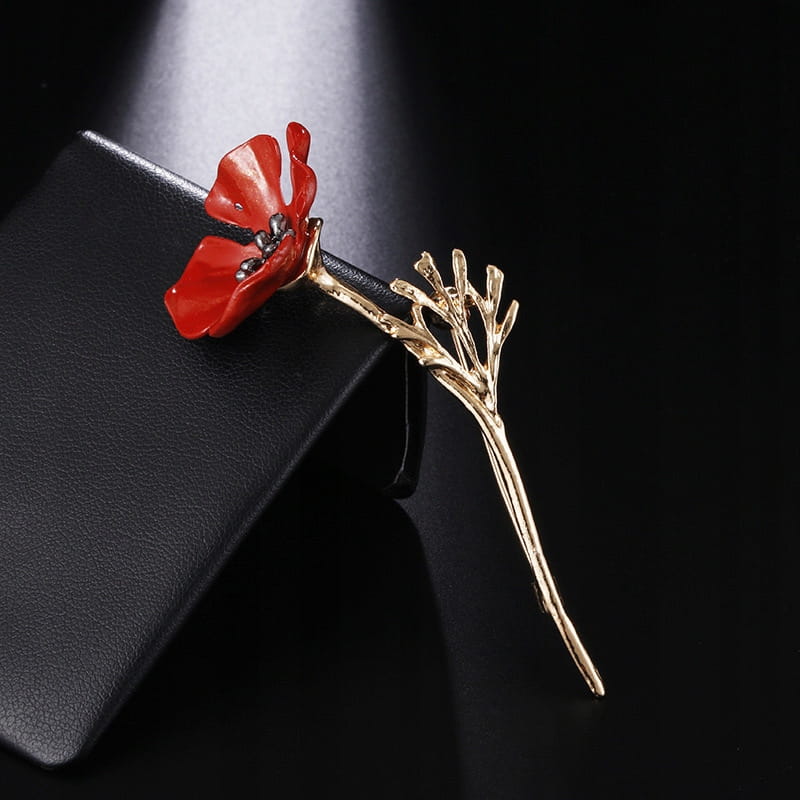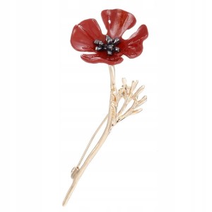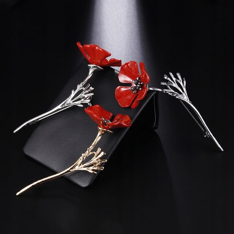 Przecudna broszka z motywem kwiatka maku z cyrkoniami.