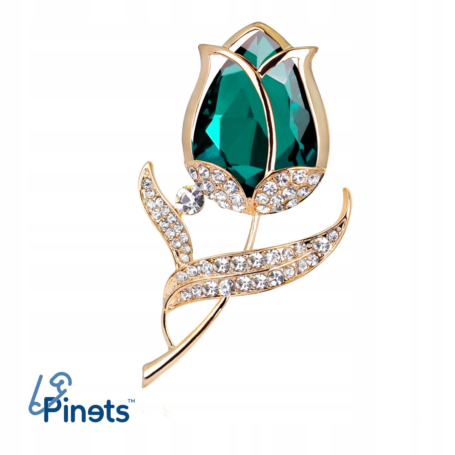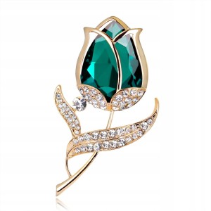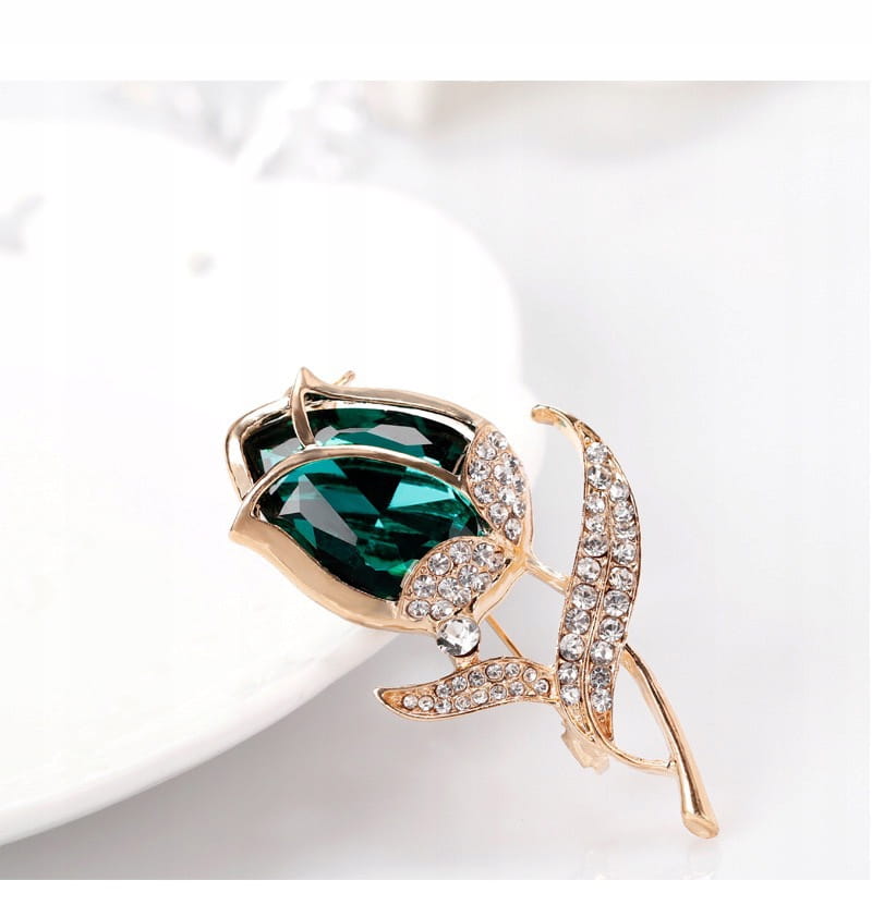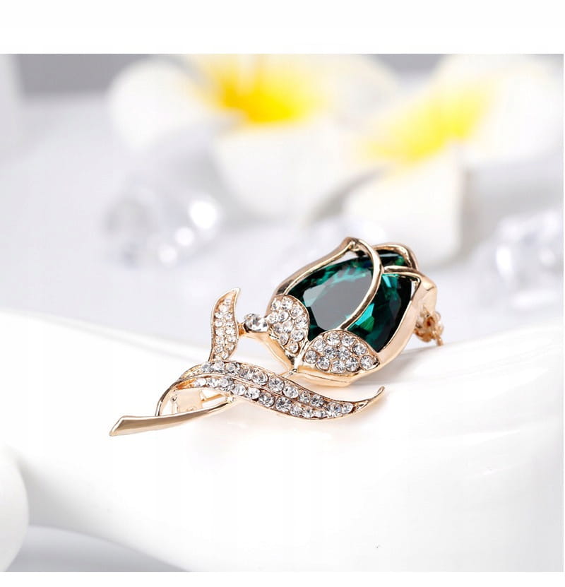 PINETS broszka kwiat RÓŻA Zielony Złoty Cyrkonie