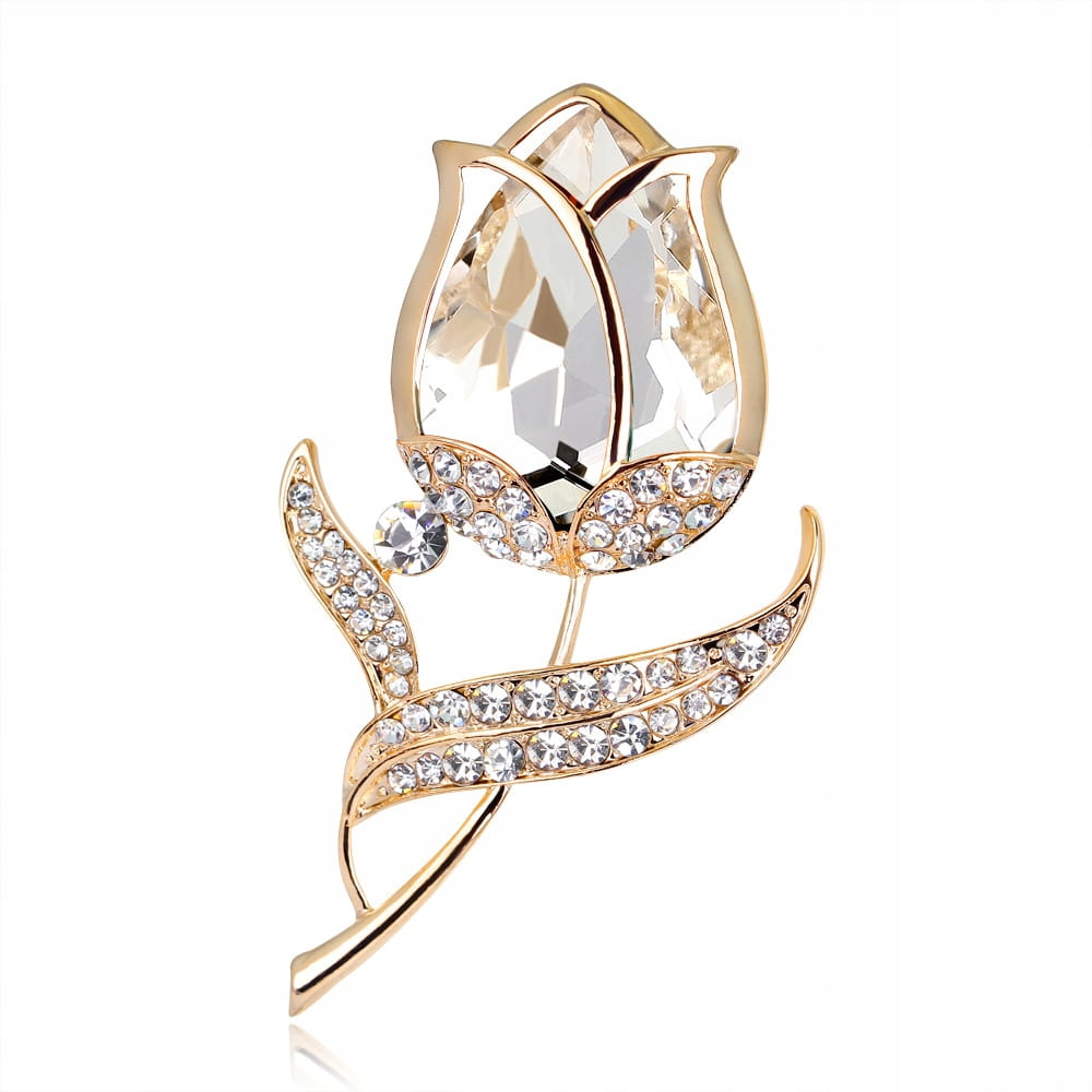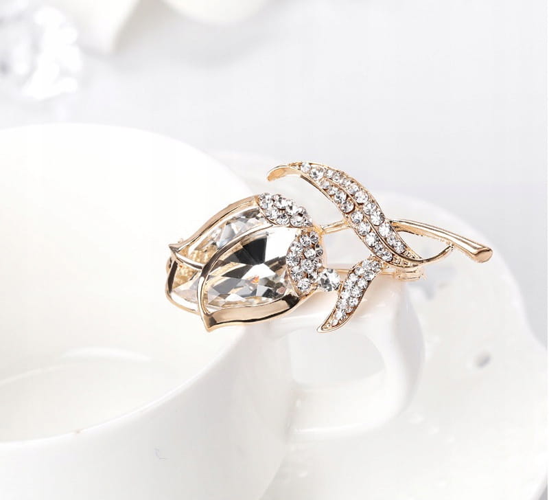 Przecudna broszka z motywem kwiatka róży z cyrkoniami.