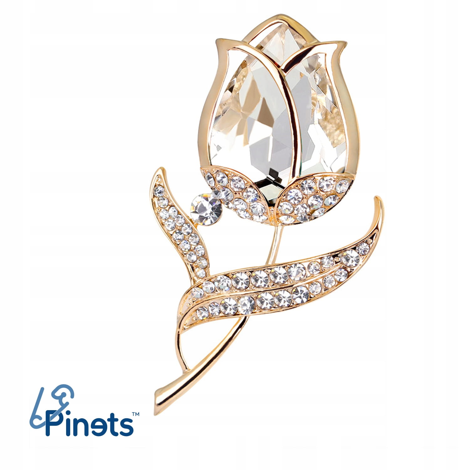 PINETS broszka kwiat RÓŻA kolor złoty z cyrkoniami