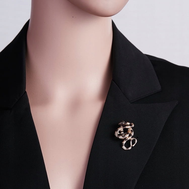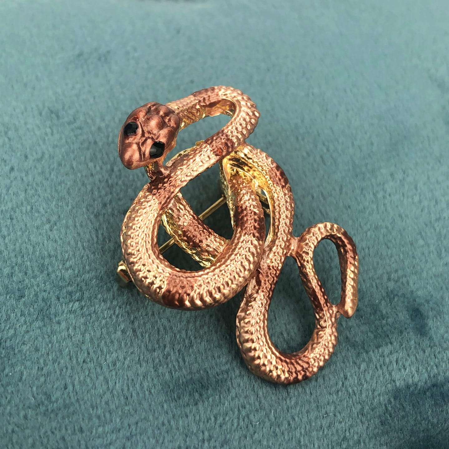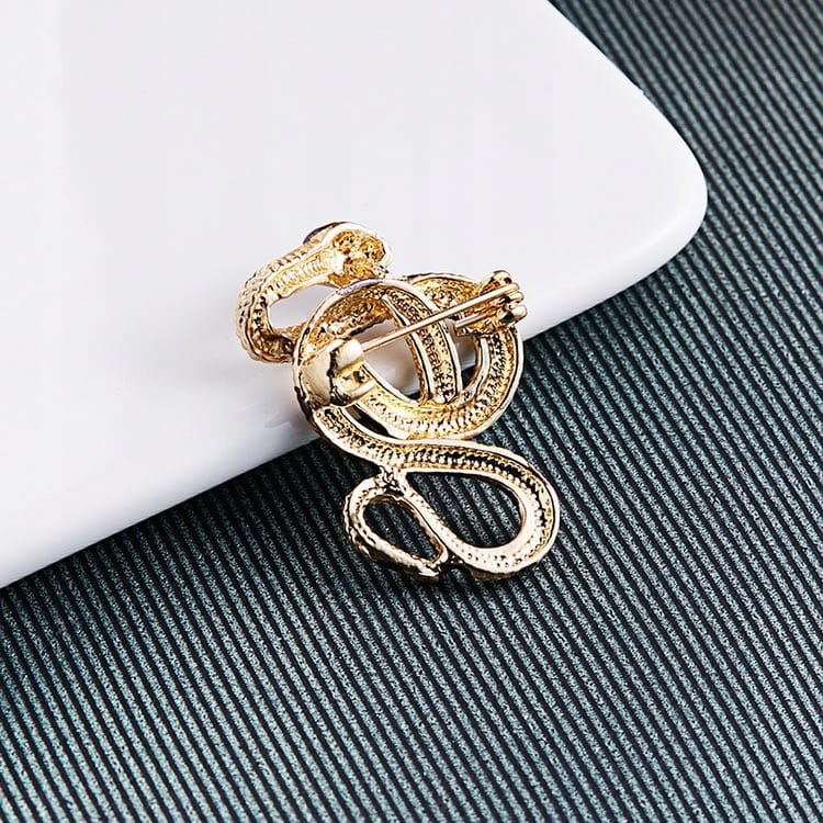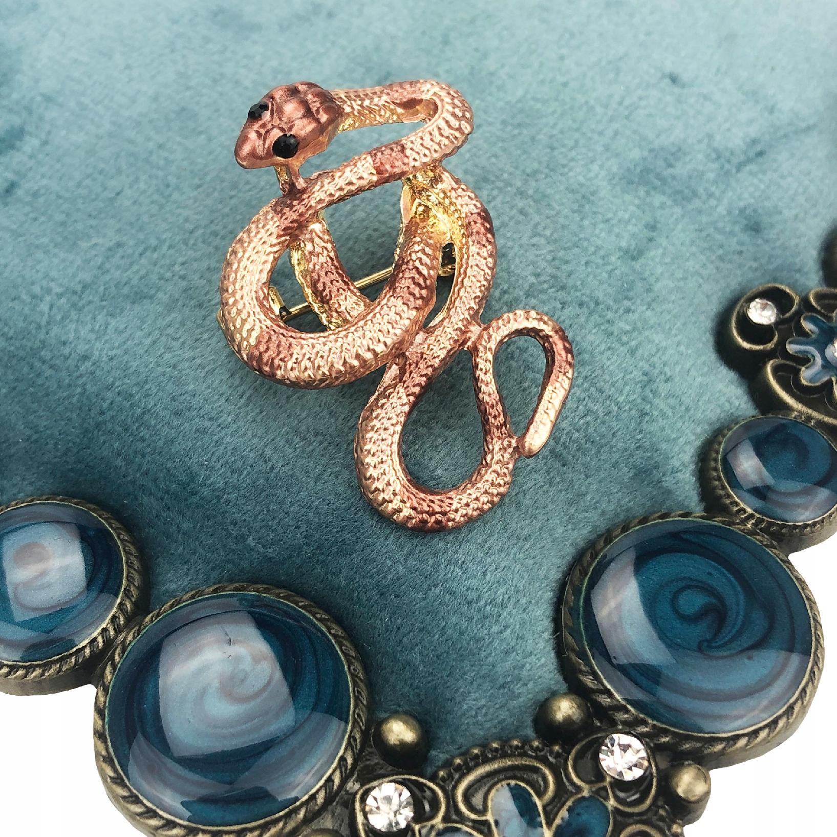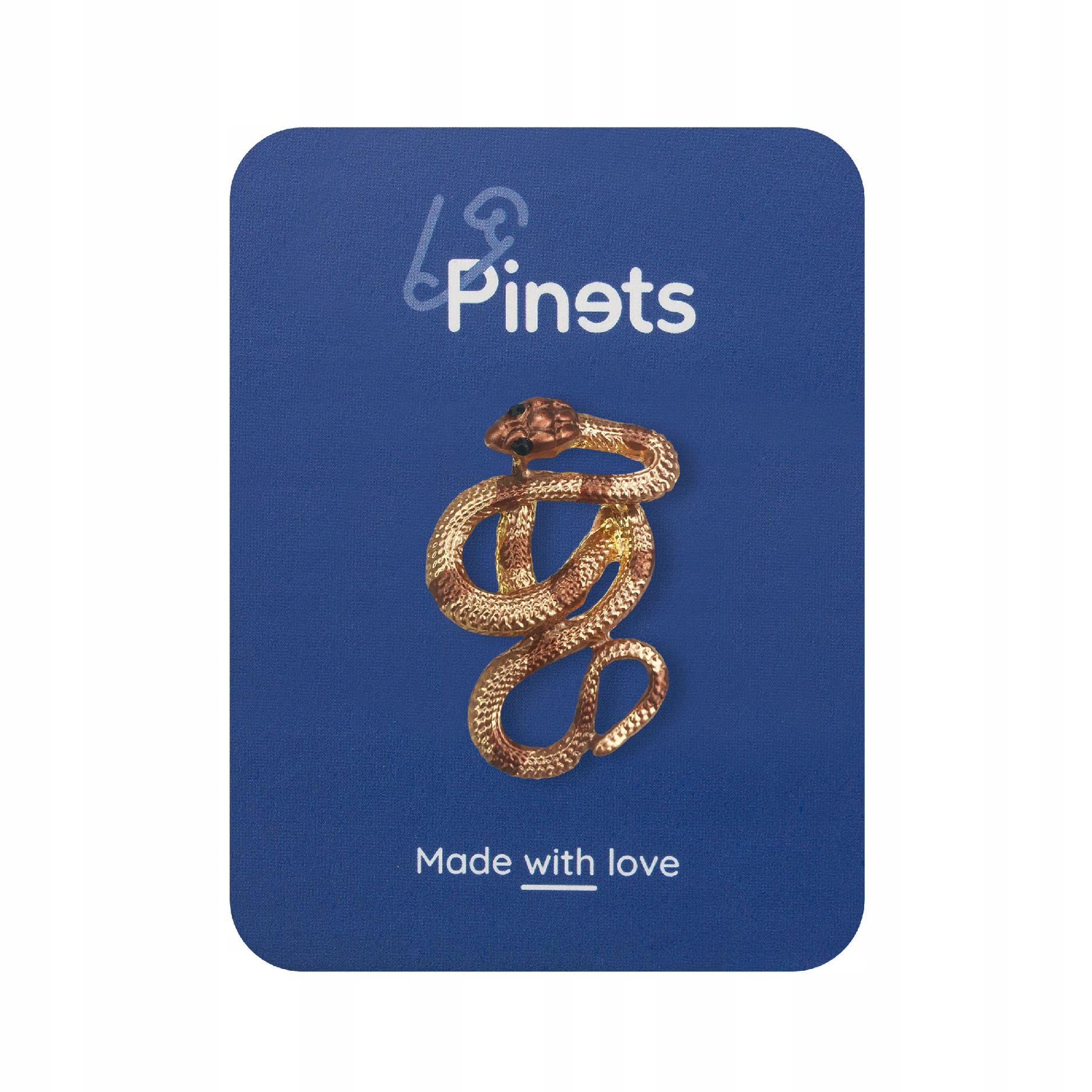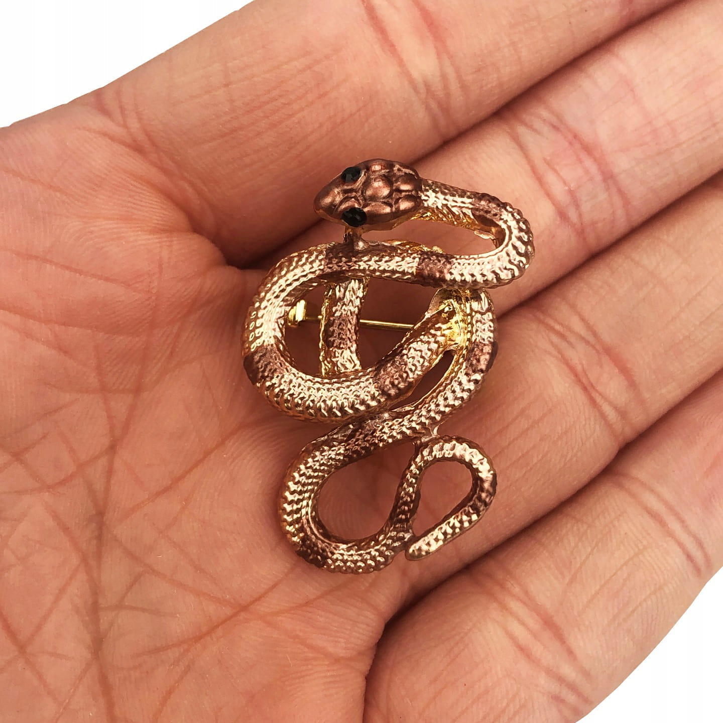 PINETS broszka złoty Wąż Żmija Kobra brązowa