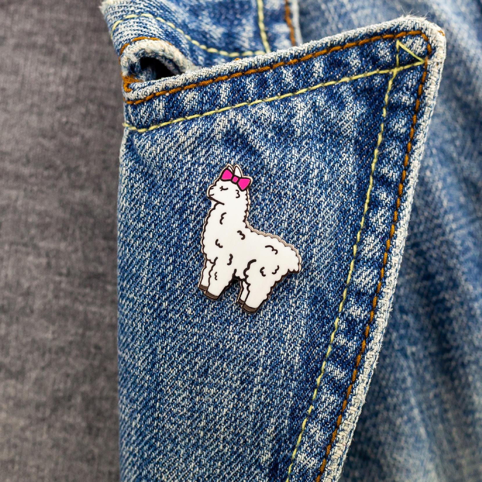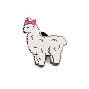 Urocza przypinka w kształcie alpaki z różową kokardką