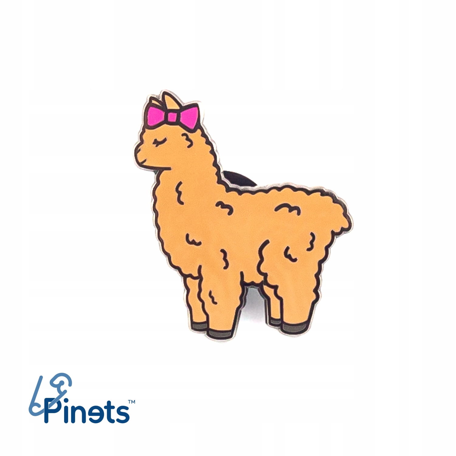 PINETS przypinka Alpaka brązowa z różową kokardką