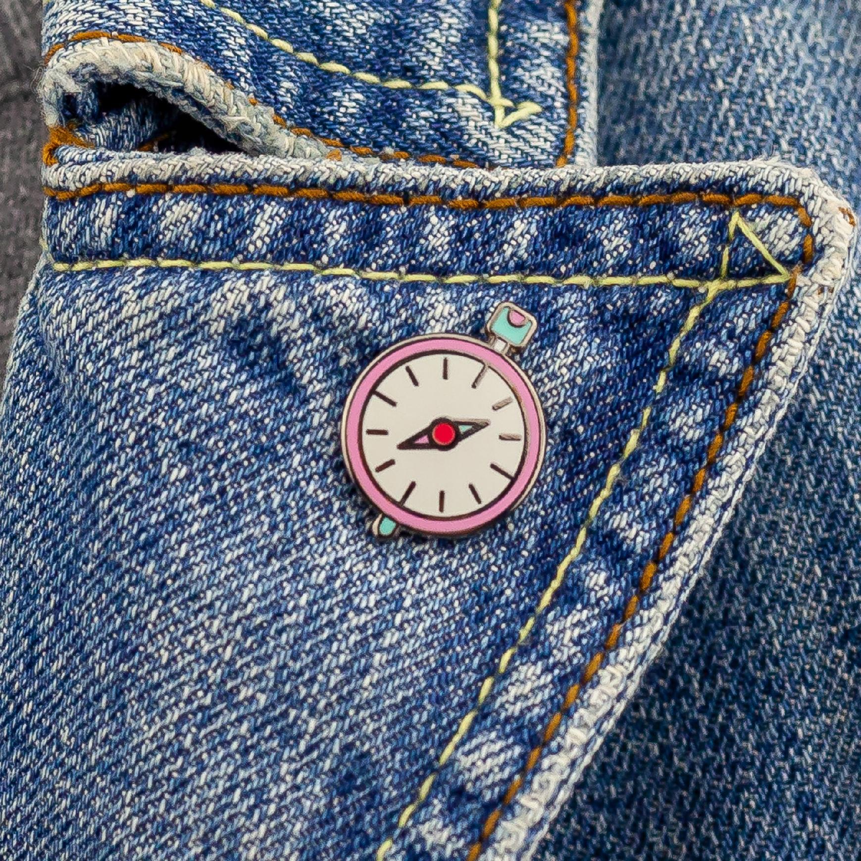 Urocza przypinka w kształcie różowego kompasu