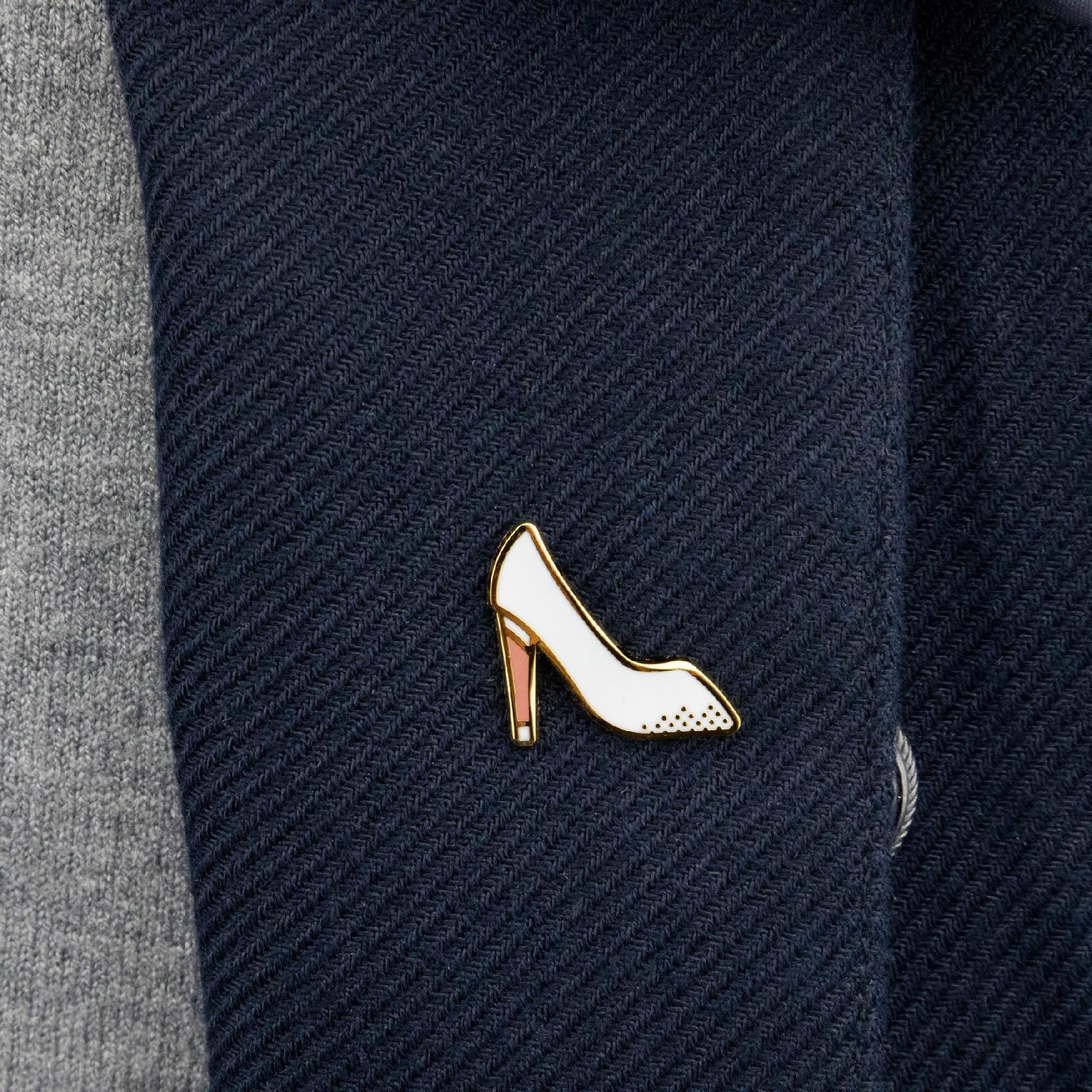 Urocza ślubna przypinka w kształcie białego damskiego pantofelka