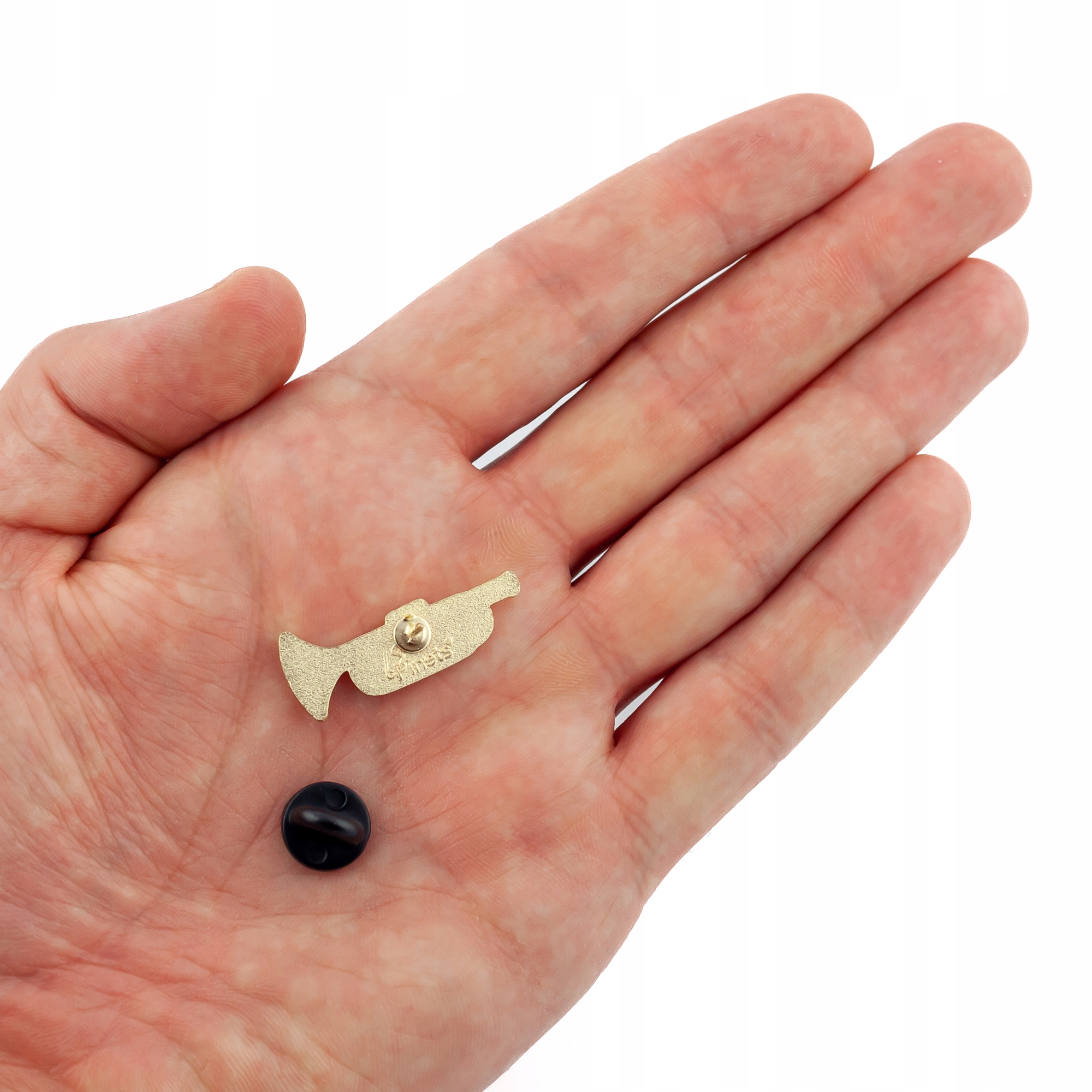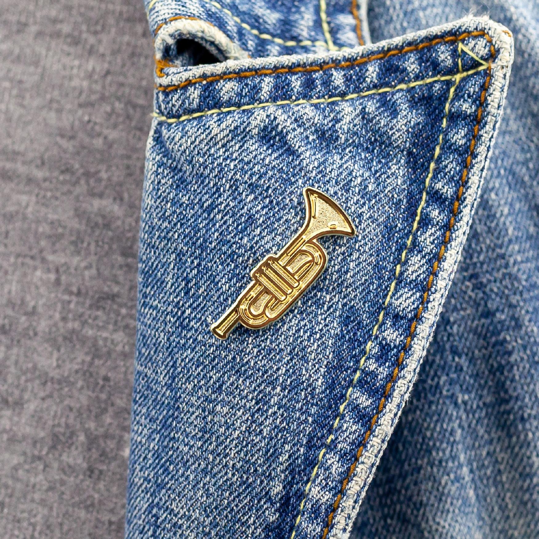 Urocza przypinka w kształcie złotej trąbki