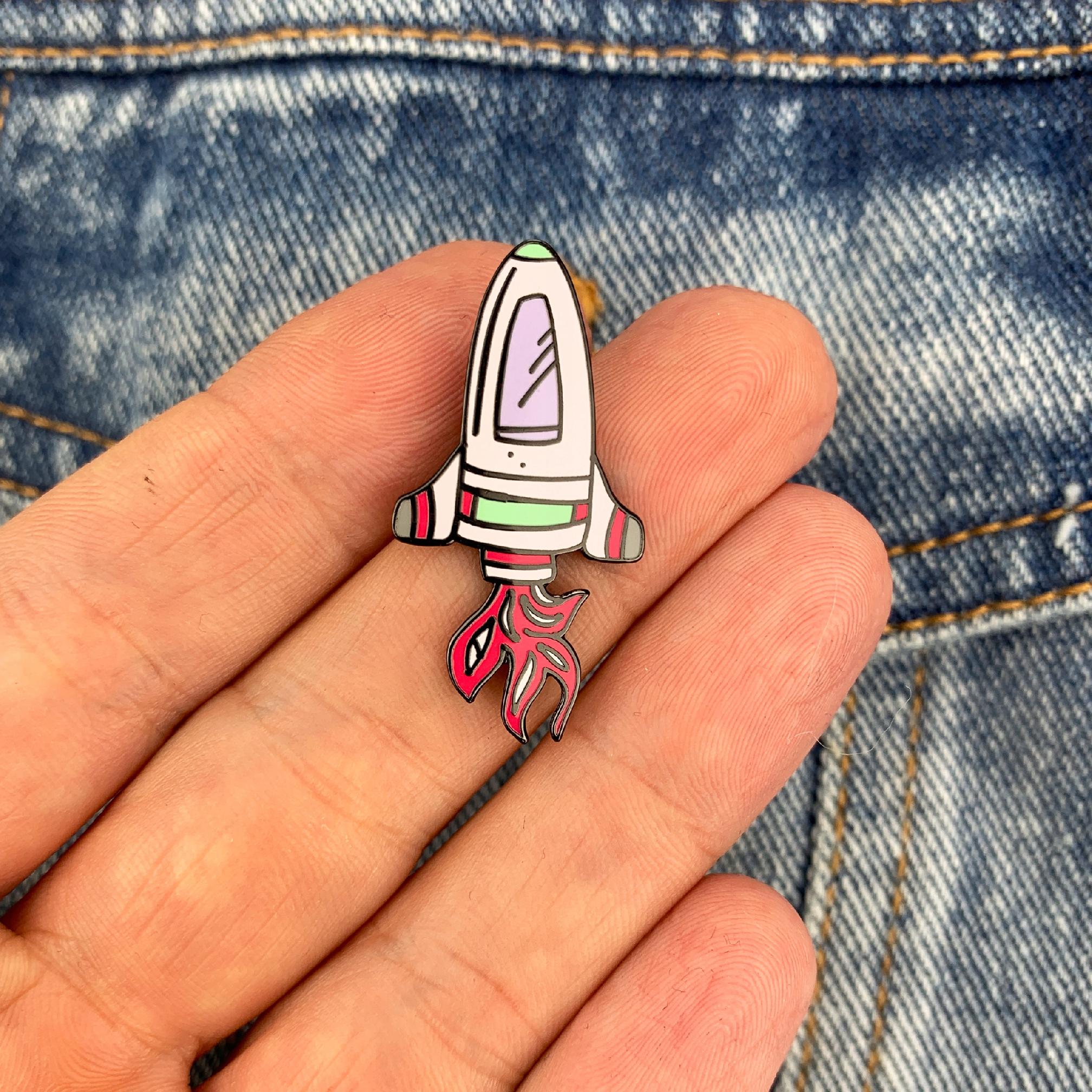 Kolekcjonerska przypinka z motywem rakiety.