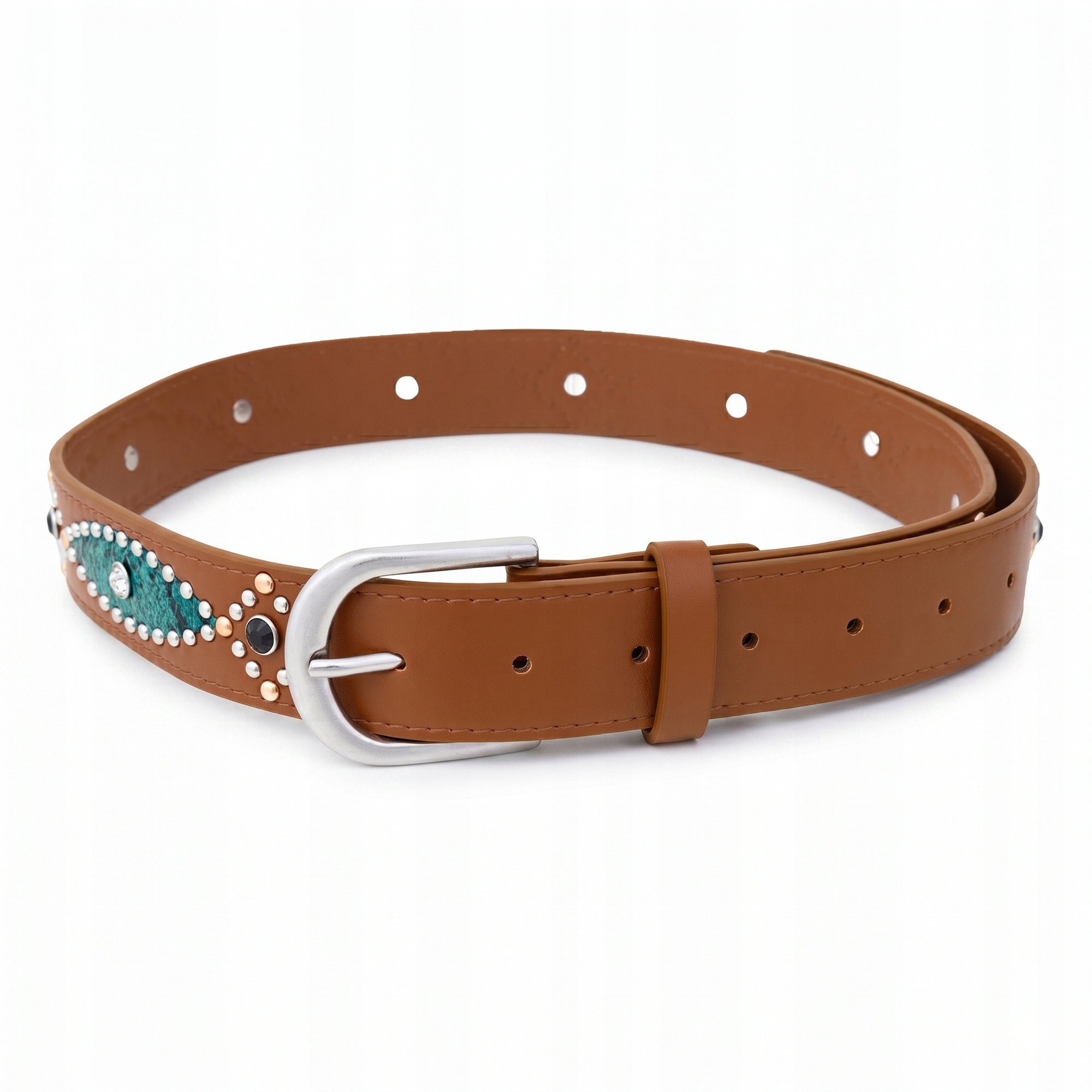 Pasek damski brązowy zdobiony styl boho etno HIT do jeansów sukienki
