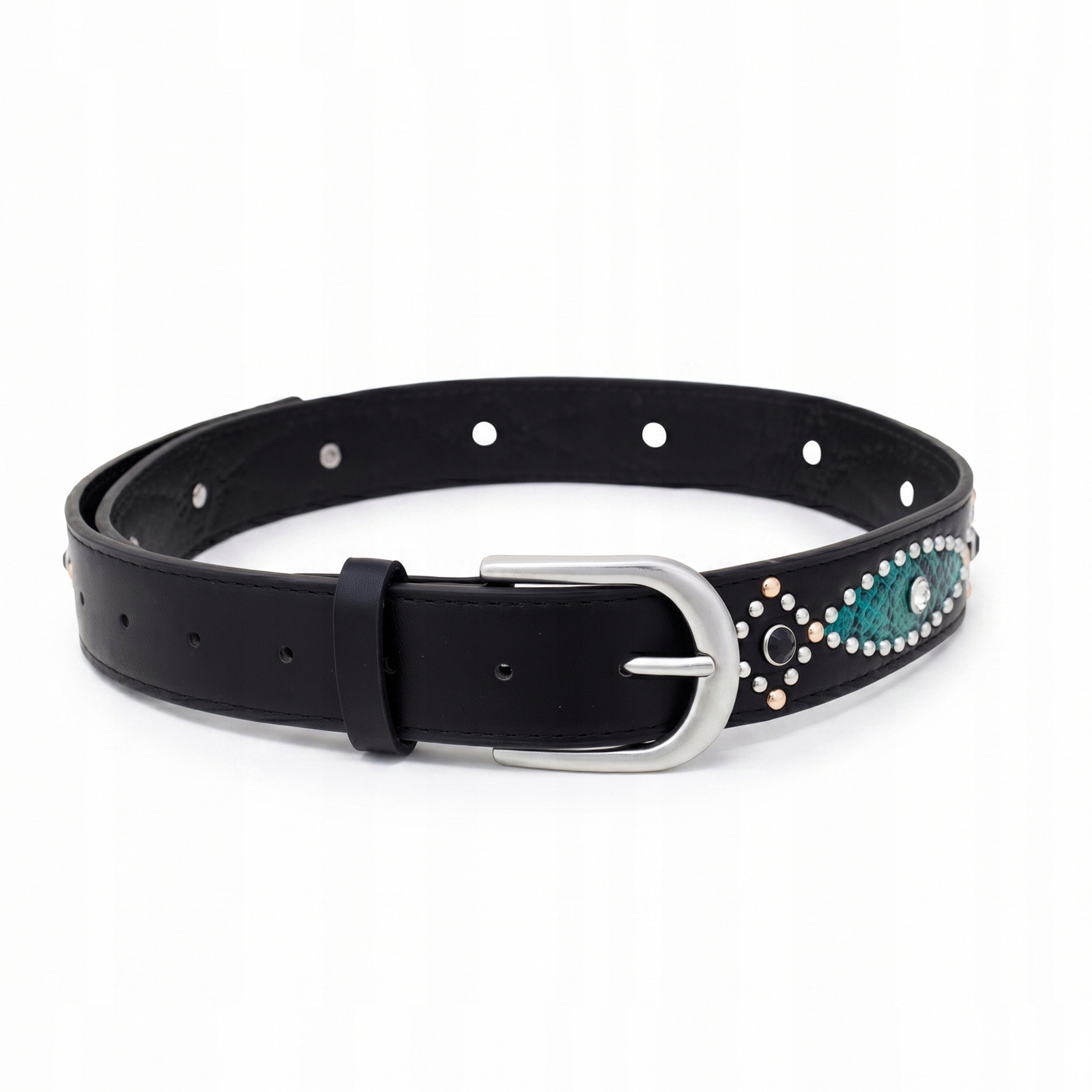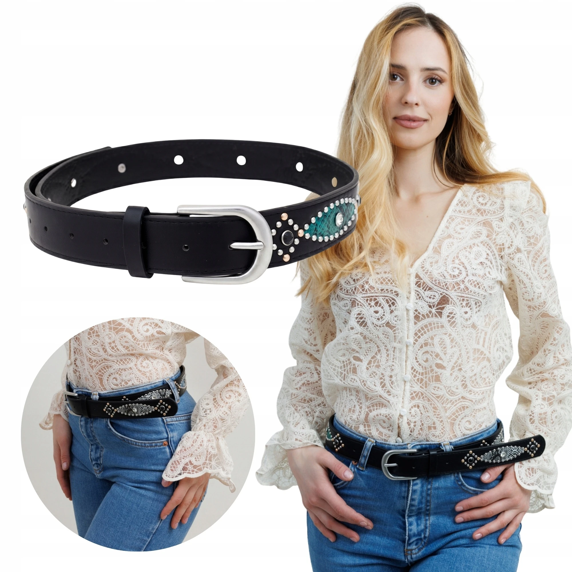 Pasek damski czarny ozdobny do jeansów sukienki boho z ćwiekami