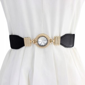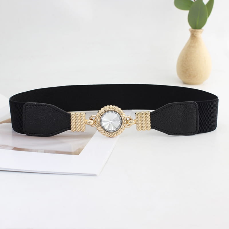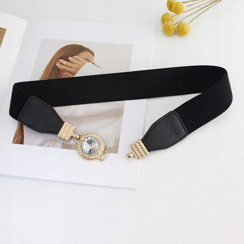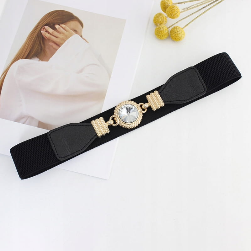 Pasek elastyczny damski czarny Cyrkonia zapinany