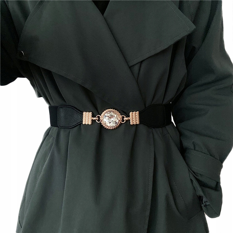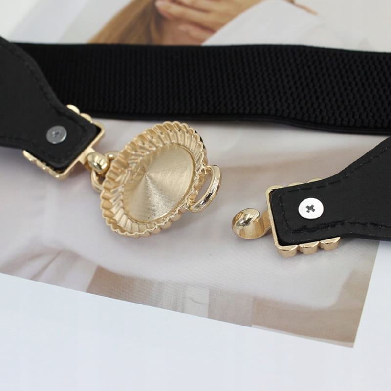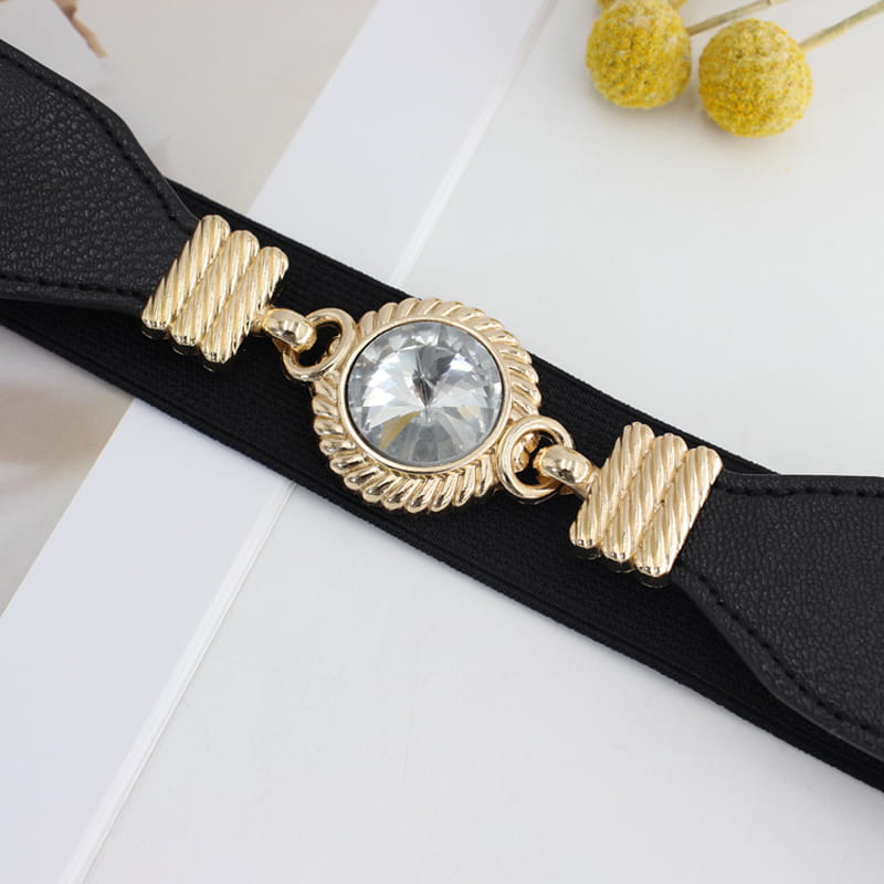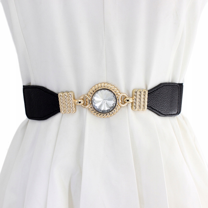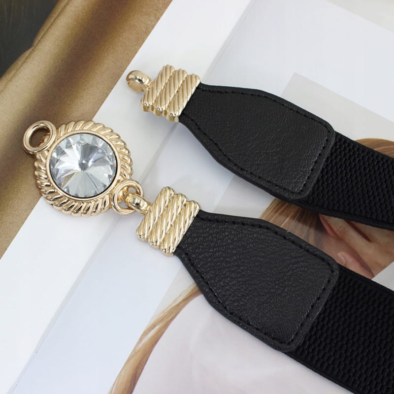 Elegancki, klasyczny pasek ze złotą klamrą z dużą cyrkonią