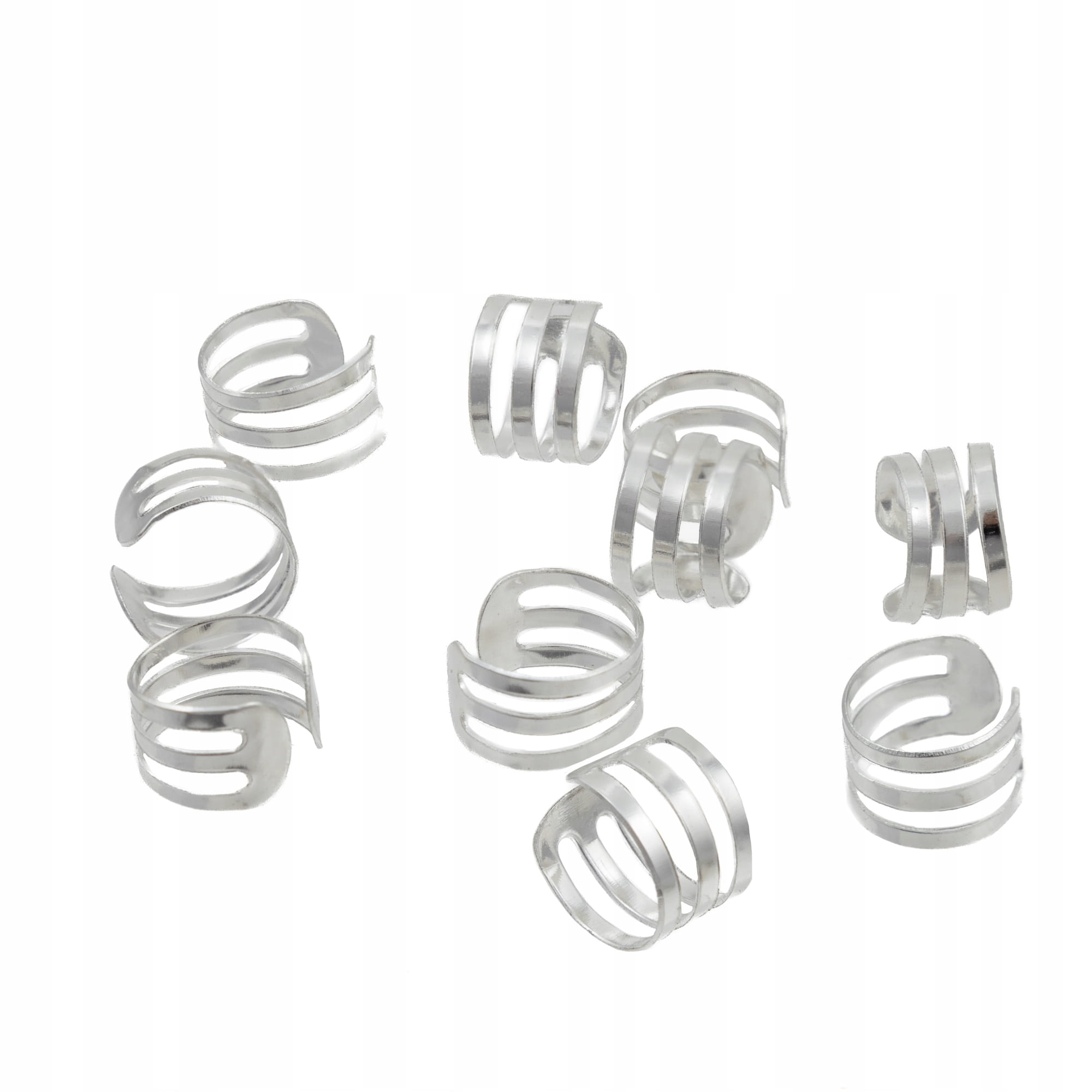 Pierścionki do warkoczyków ozdoby biżuteria na włosy Srebrne 10 szt