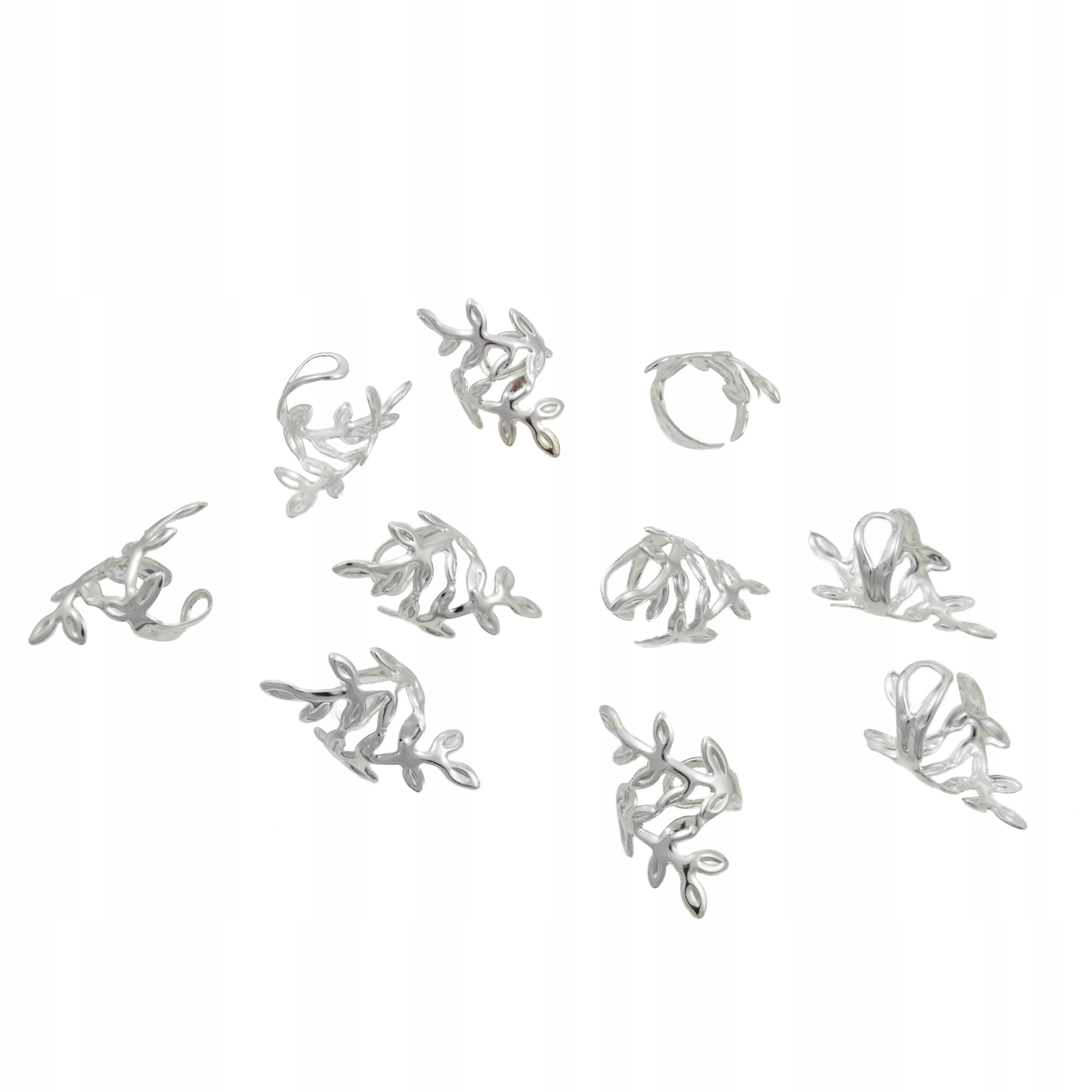 Srebrne Ozdoby do Włosów – Pierścienie w Kształcie Gałązki, 10 szt. – Little Angel