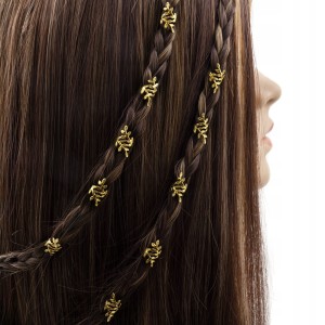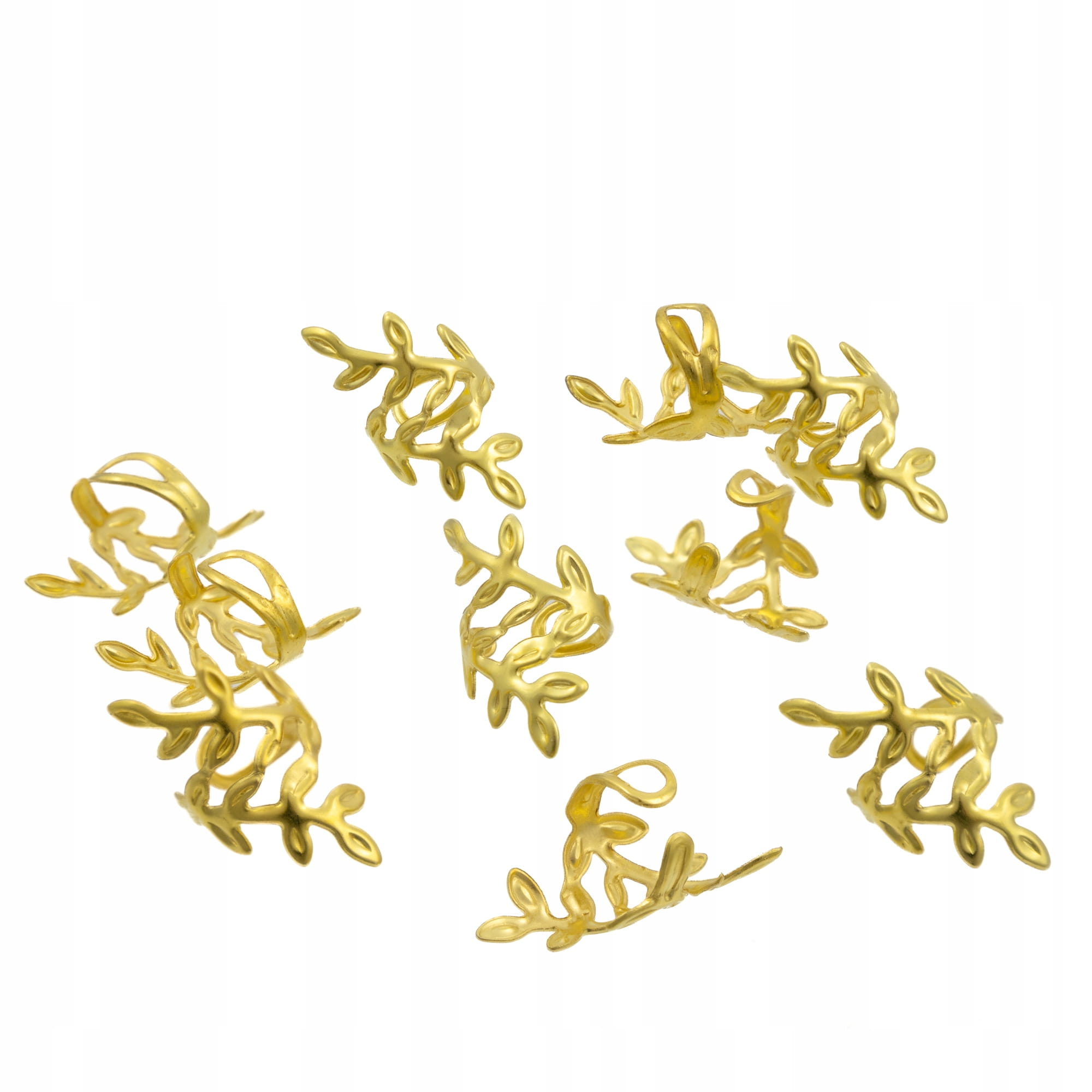 Pierścionki do warkoczyków ozdoby biżuteria na włosy Złote Listki 10 sztuk