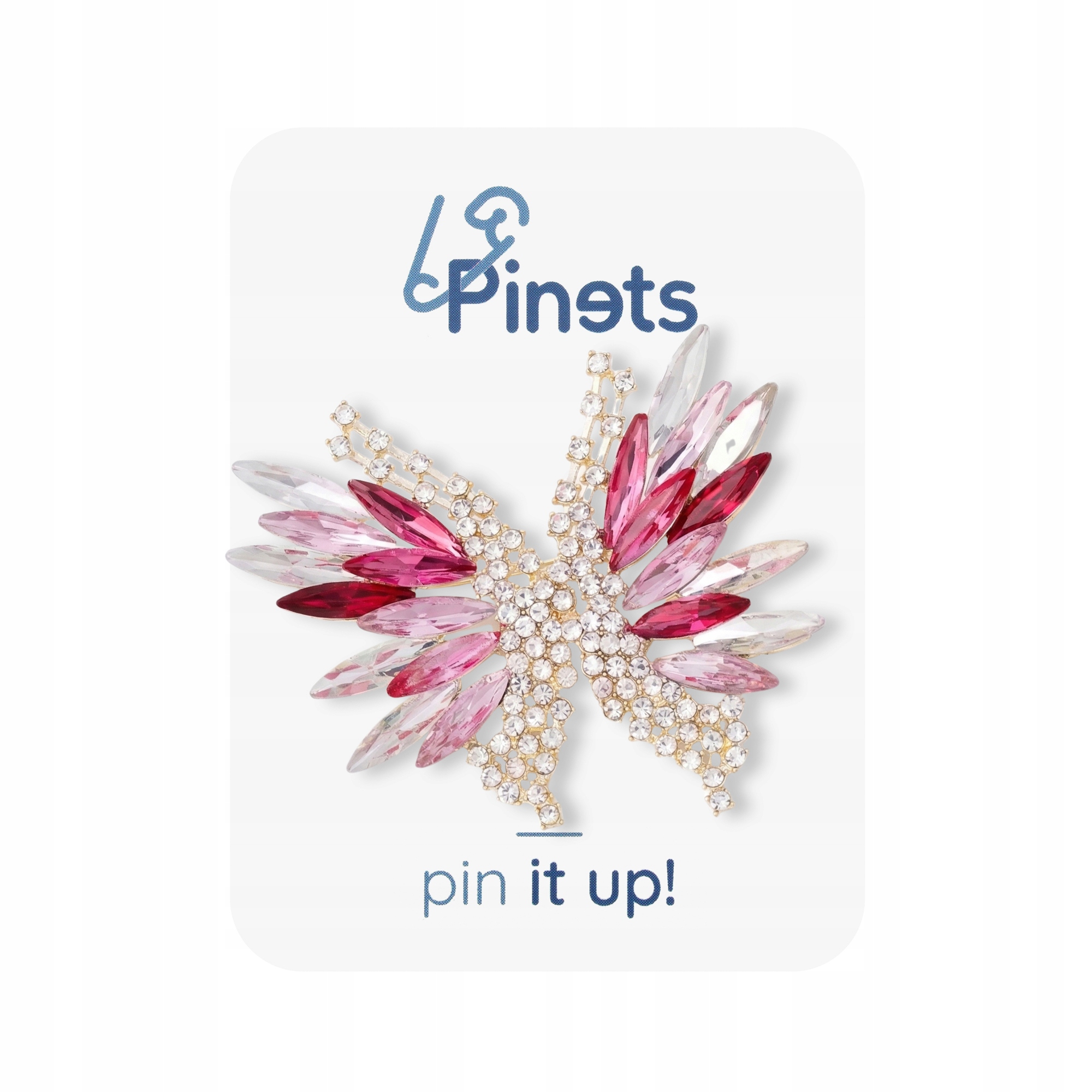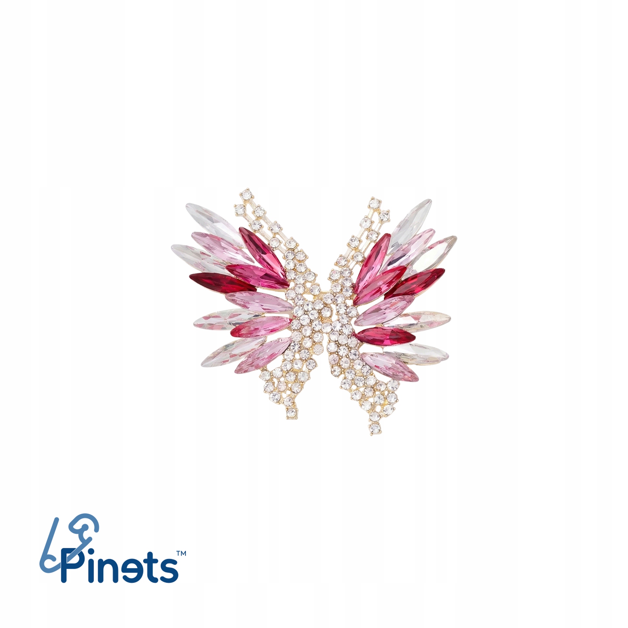Pinets Broszka Motyl Glamour Różowo-Złota z Kryształami Cyrkonie Luksusowa