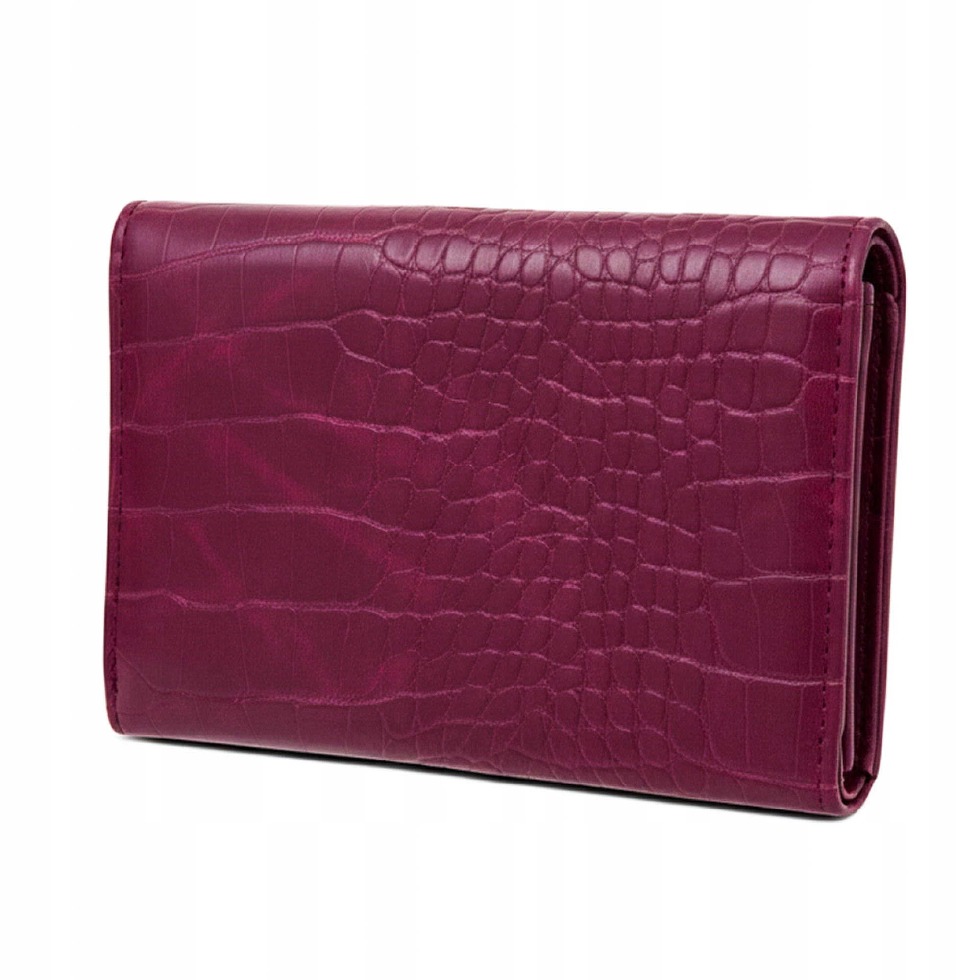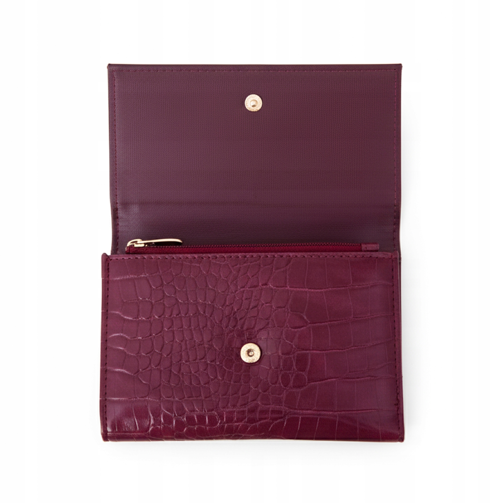 Portfel damski bordowy Skóra ekologiczna Dużo przegródek krokodyli wzór