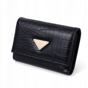 Portfel damski czarny Elegancki krokodyli wzór Skóra ekologiczna