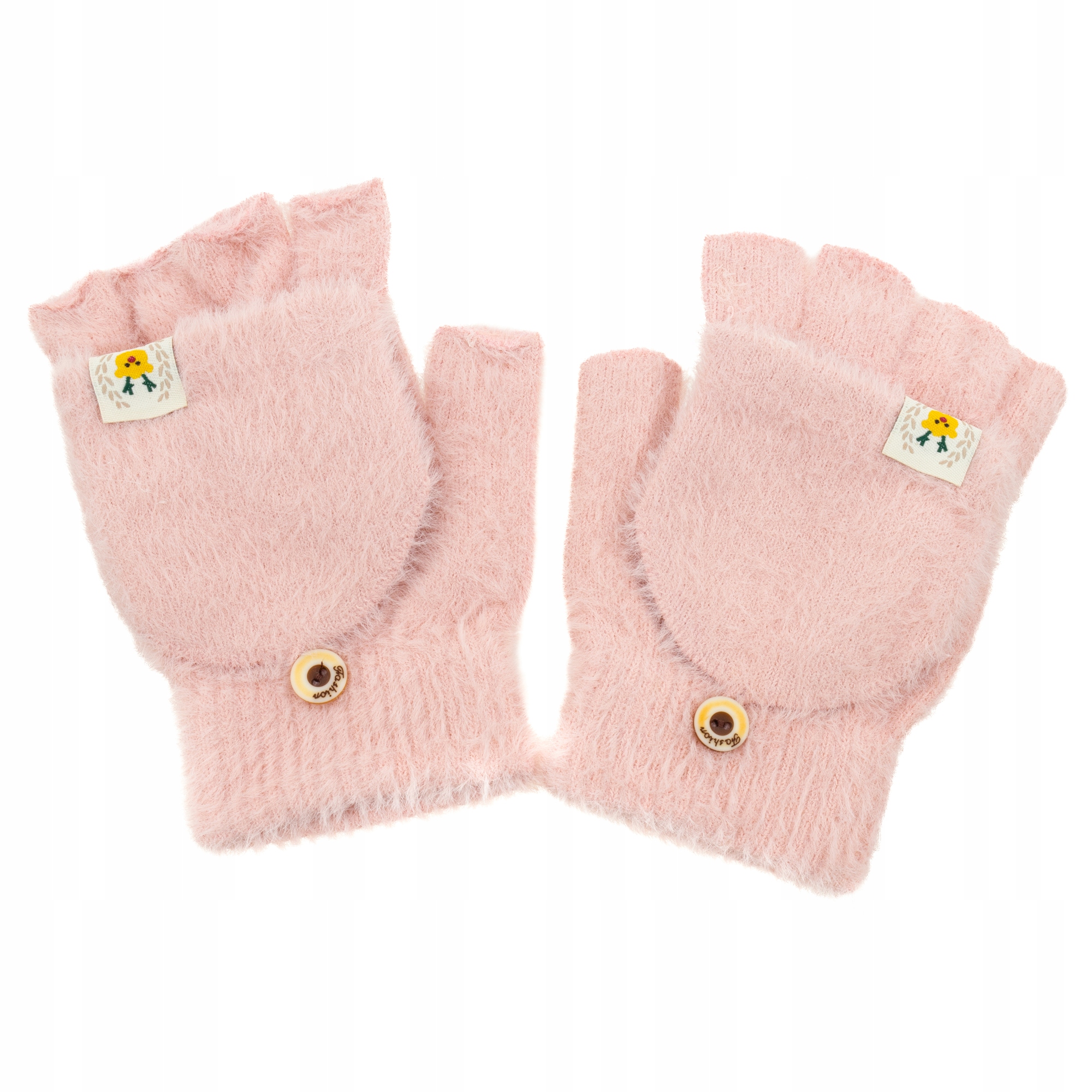 Rękawiczki bez palców mitenki mięciutkie ciepłe zamykane różowe