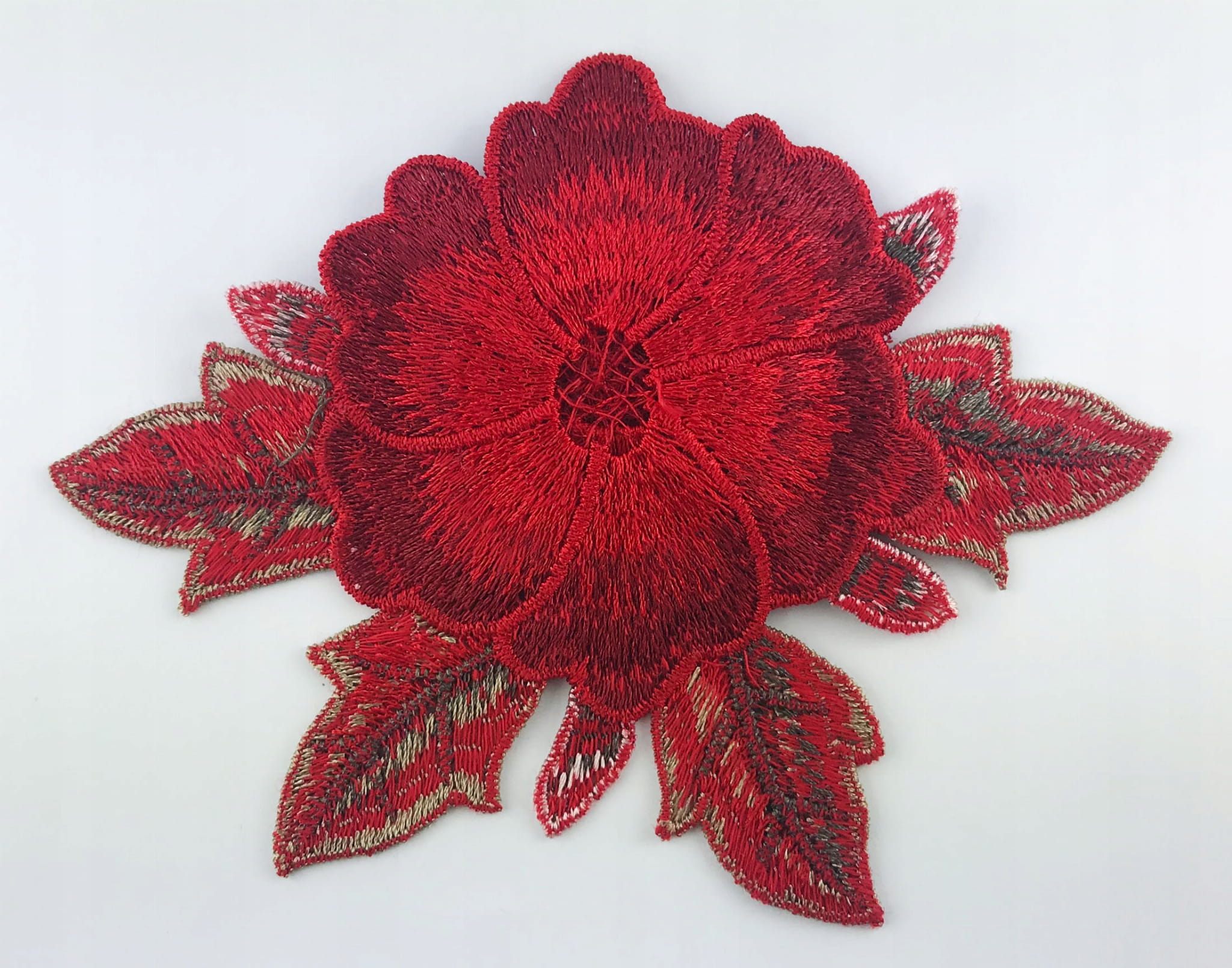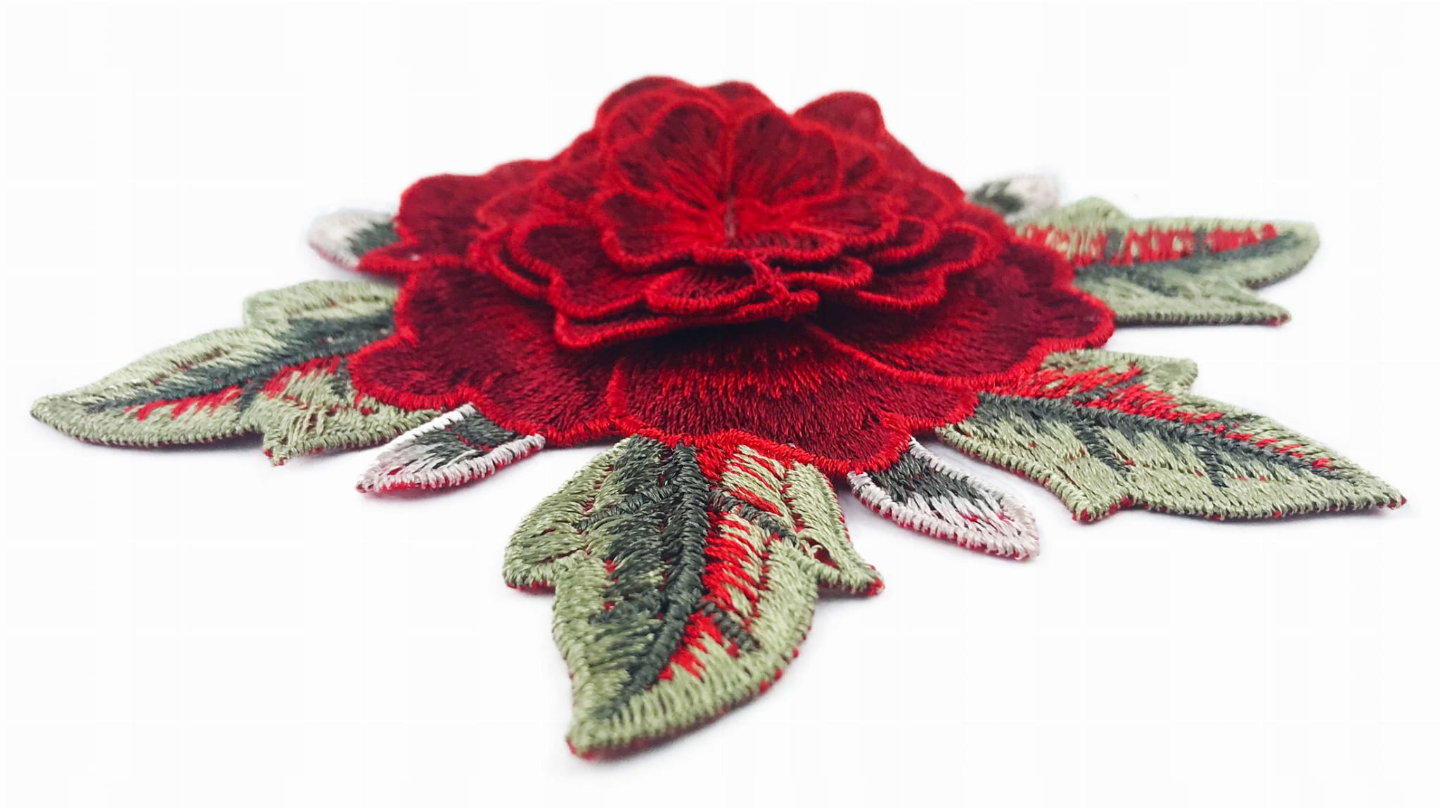 Naszywka z efektem 3D czerwona róża z listkami