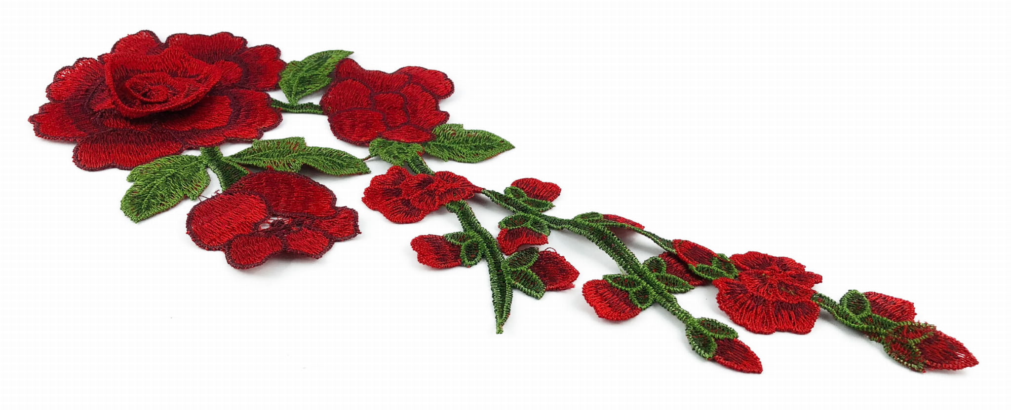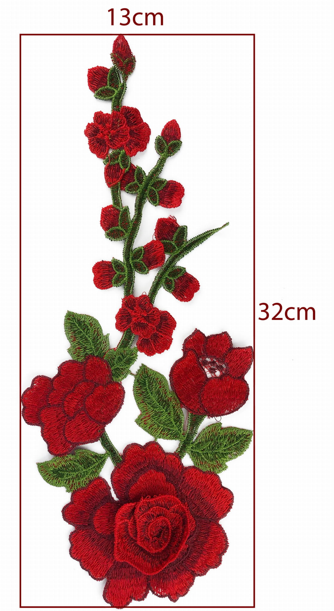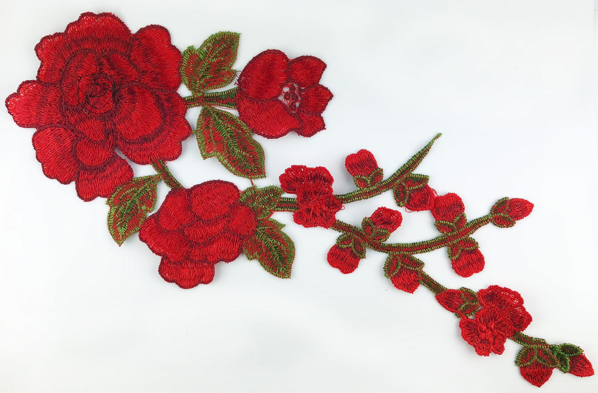 Róża czerwona EFEKT 3D naszywka haft KWIAT 32cm