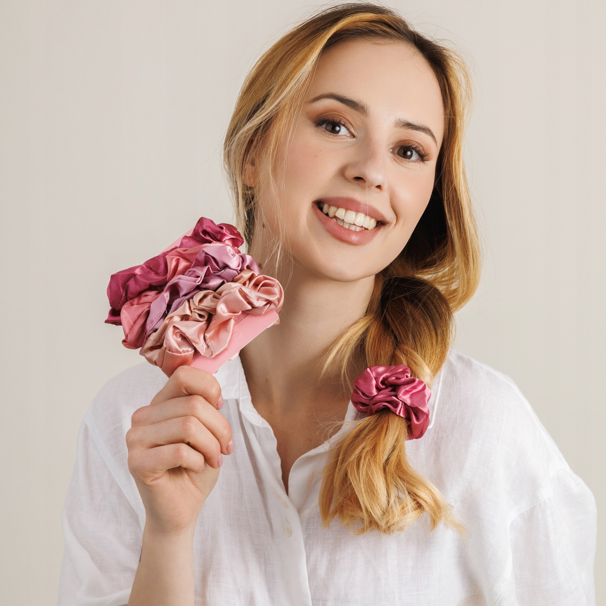 SCRUNCHIES SATYNOWE GUMKI DO WŁOSÓW 12 SZT SCRUNCHIE HIT MIĘKKIE MODNE RÓŻE