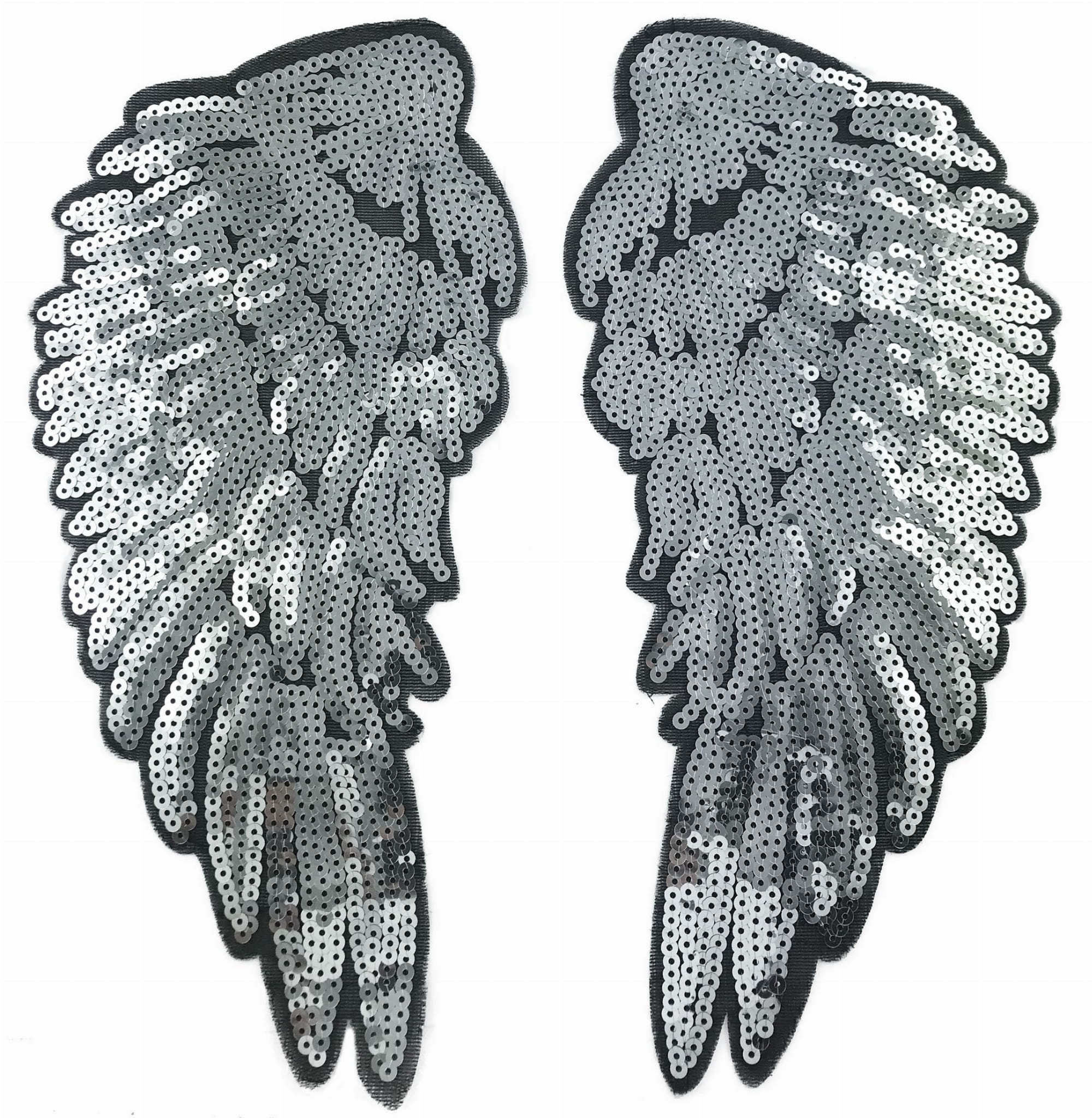 Skrzydła Duże 30 cm srebrne cekinowe termo