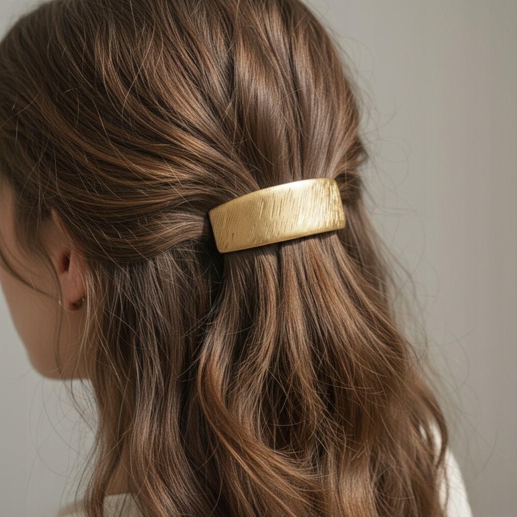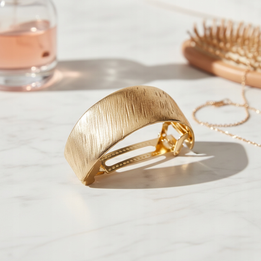 Złota klamra do włosów brushed – minimalistyczna elegancja