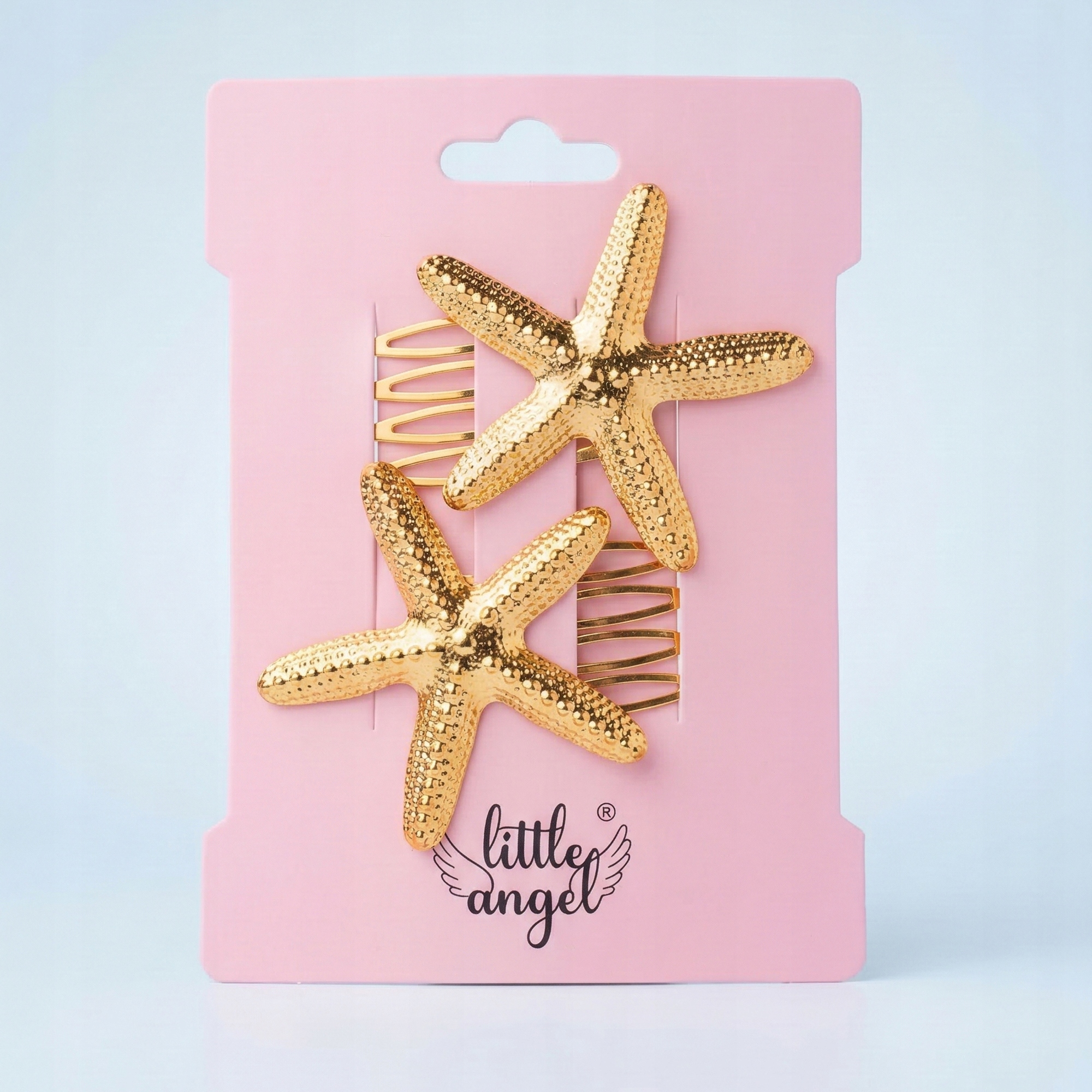 Spinki do Włosów Rozgwiazda Złota Ozdoba do Koka Grzebień do Włosów 2 szt