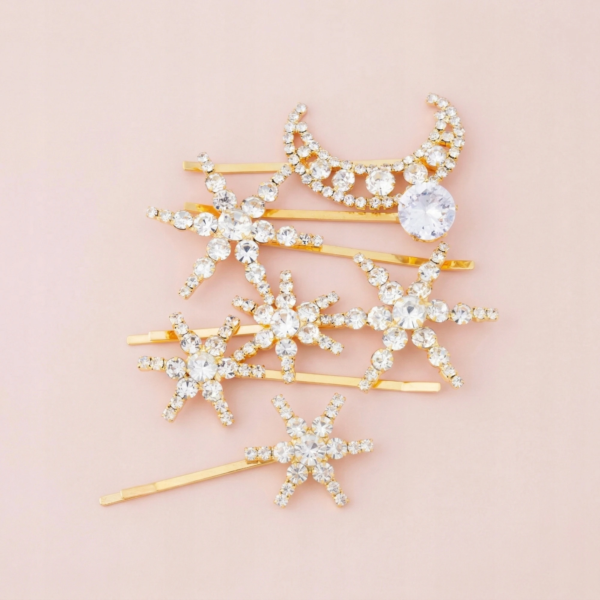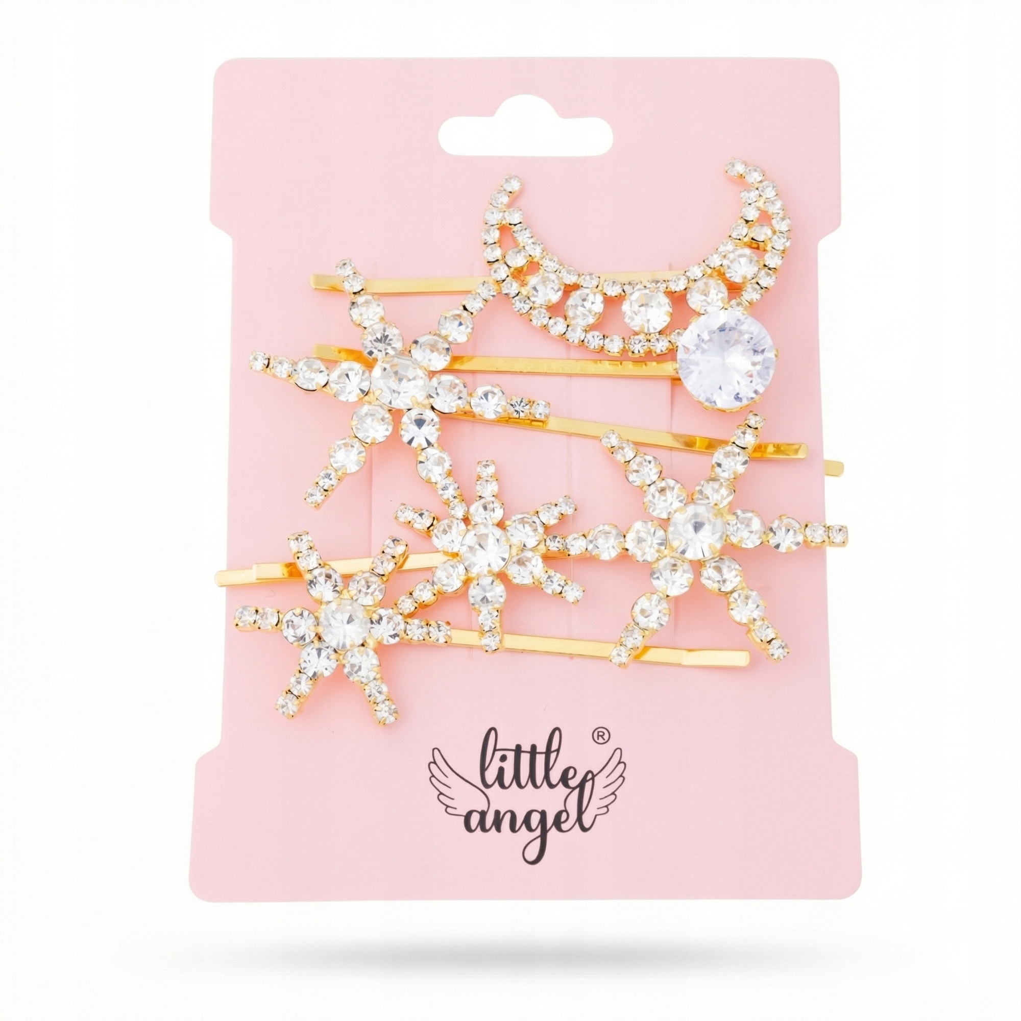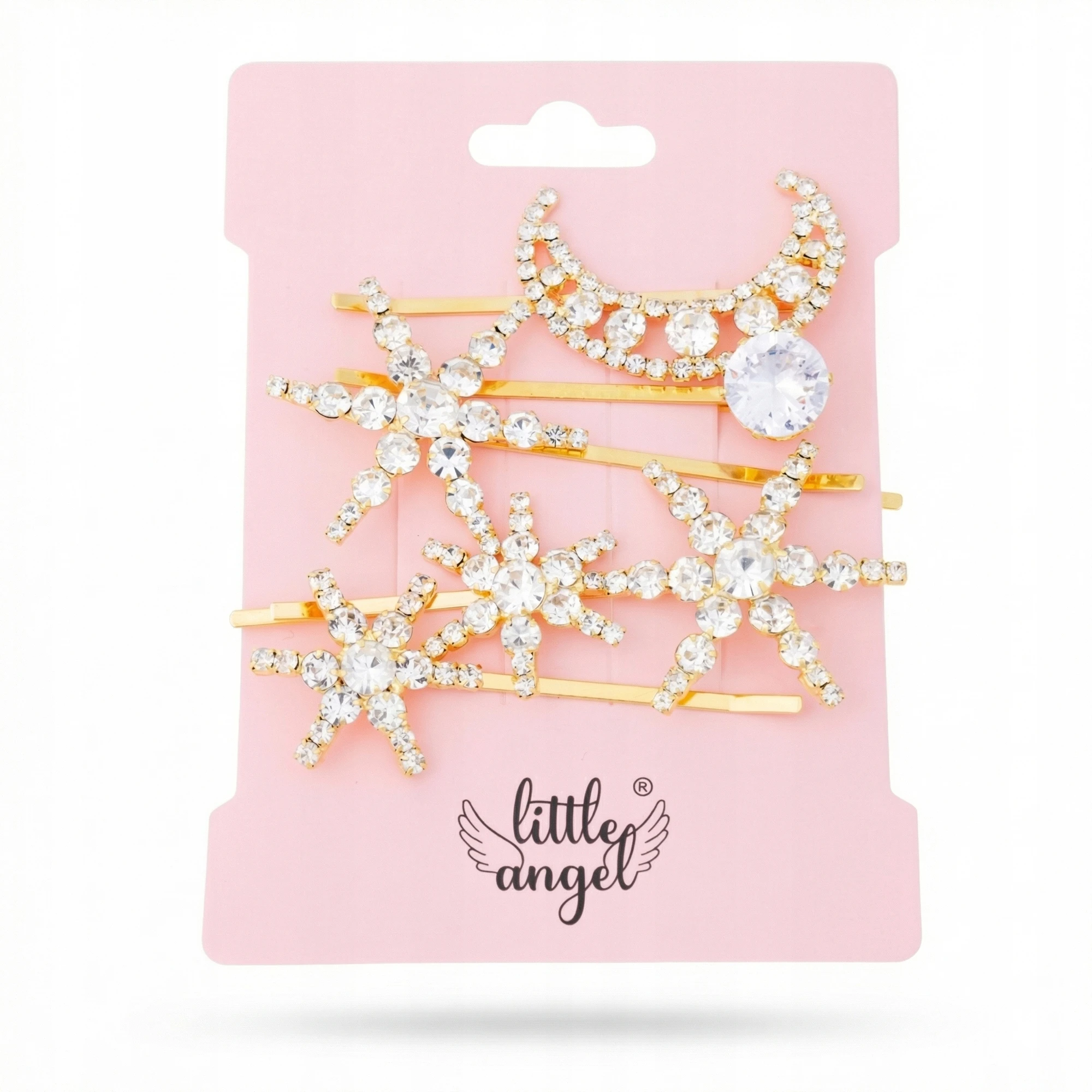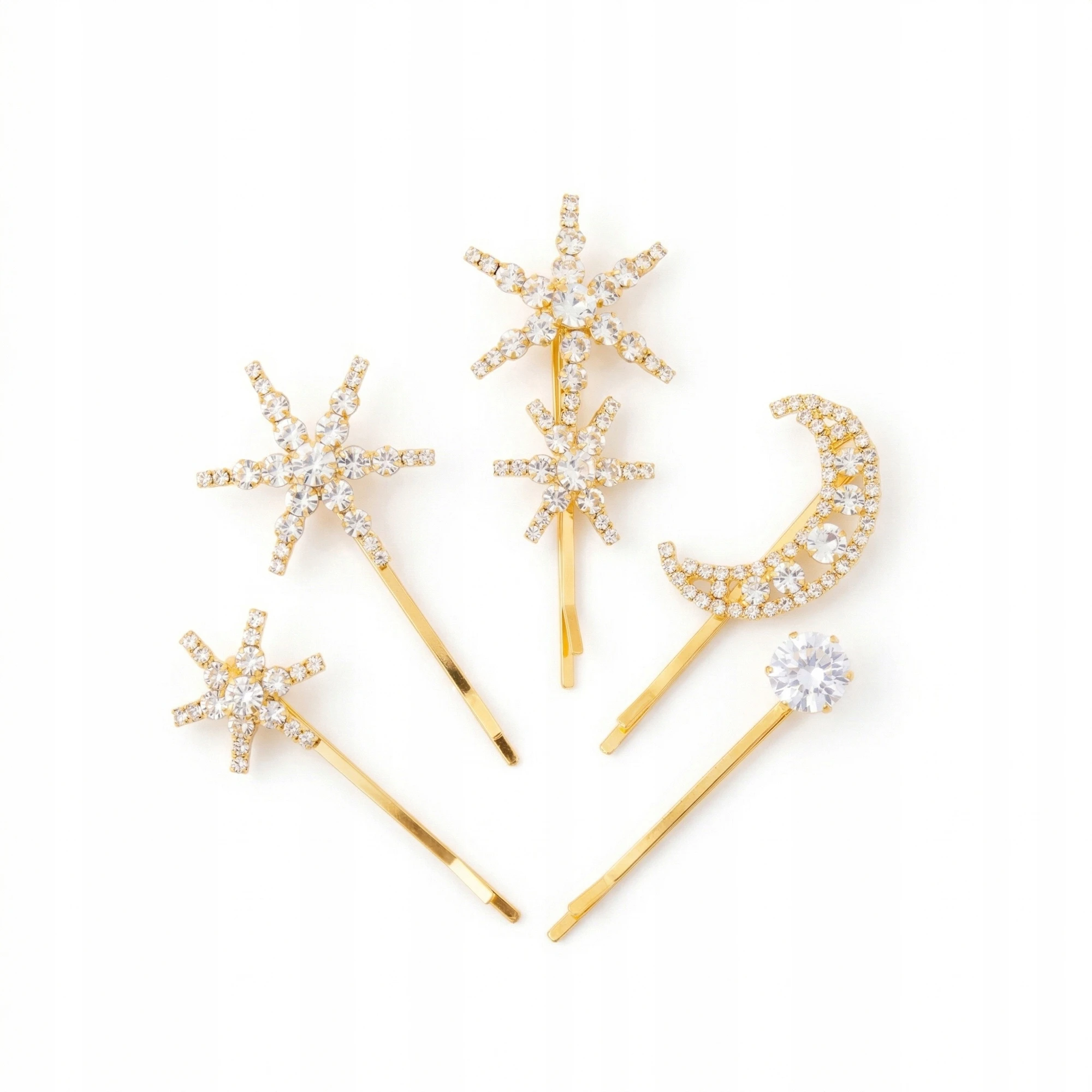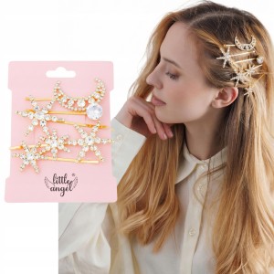 Złote spinki do włosów gwiazdki i księżyc z kryształkami – 5 sztuk