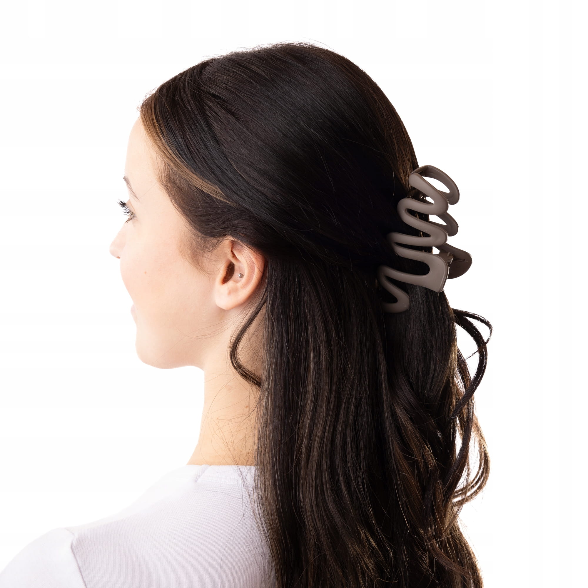 Stylowa Matowa Klamra do Włosów Brązowa Zygzak