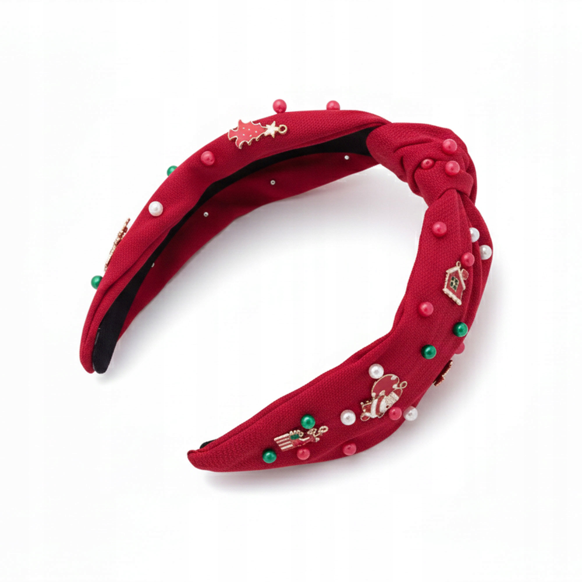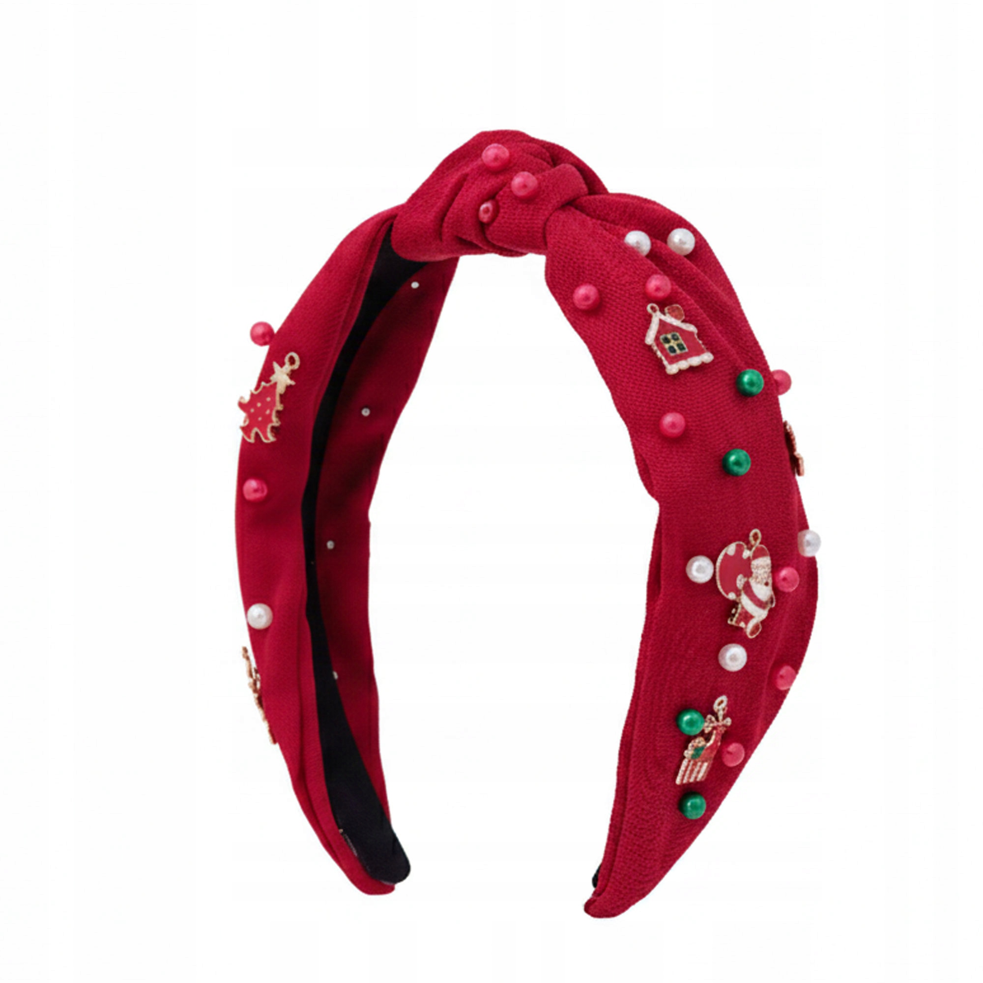 Świąteczna opaska do włosów czerwona z perełkami i zawieszkami