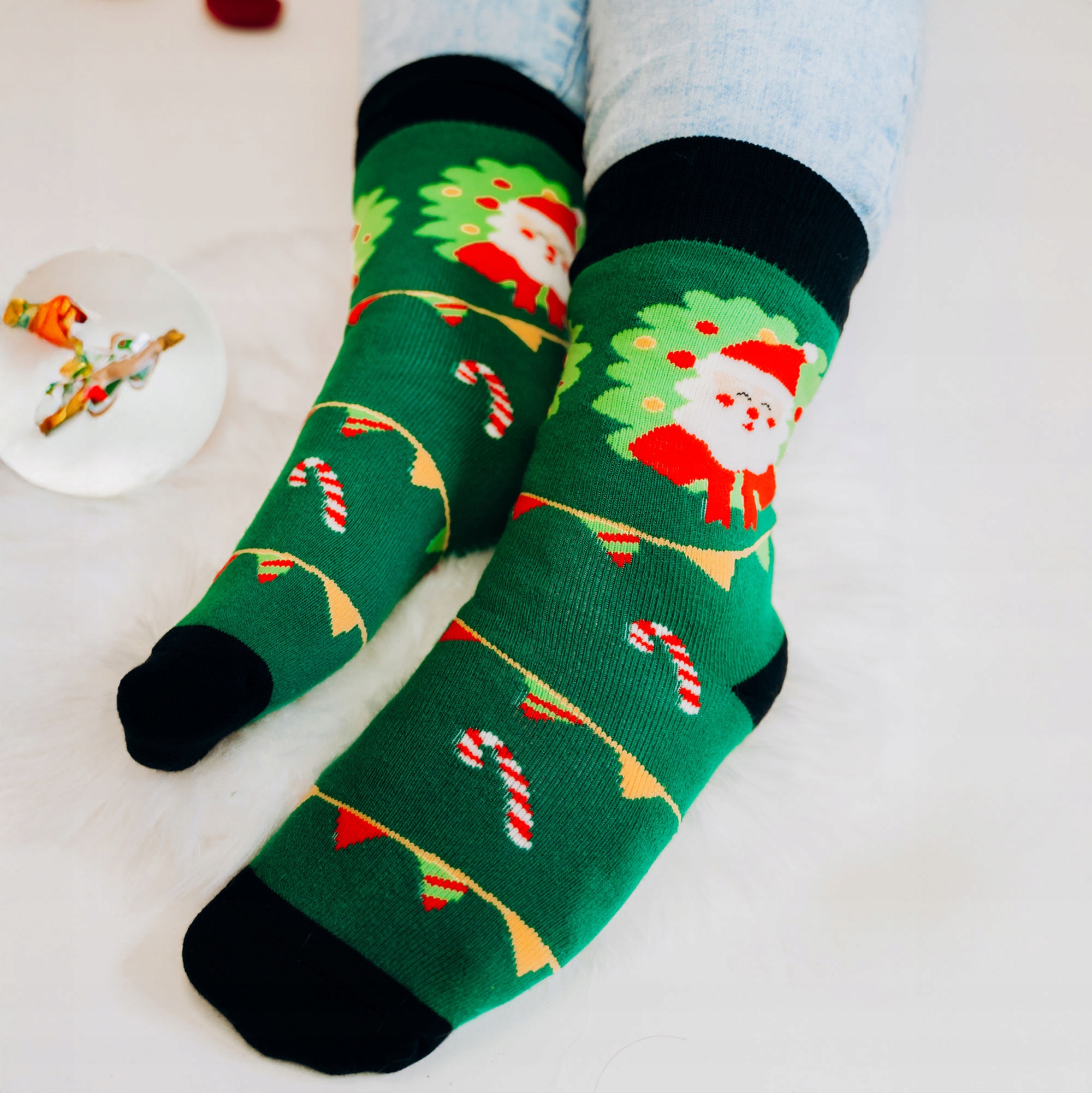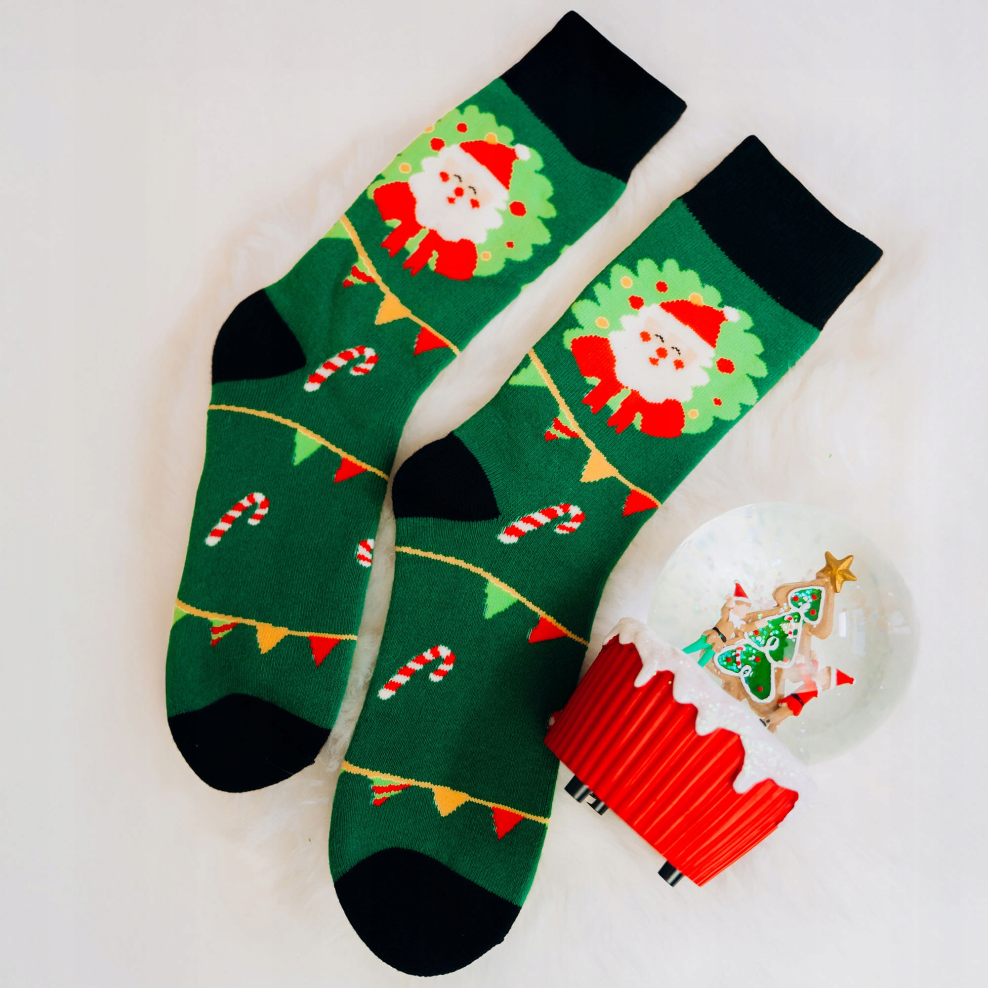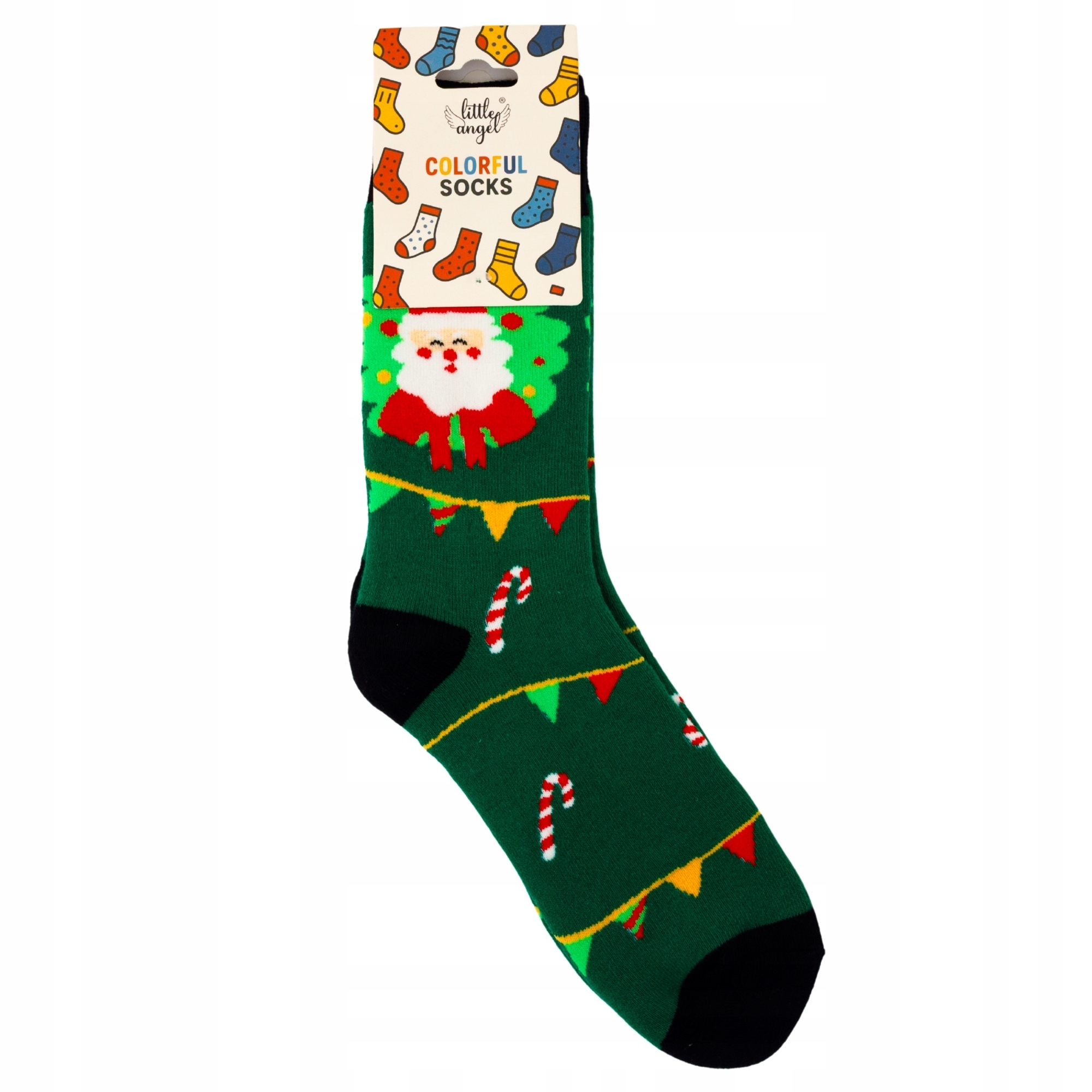 Świąteczne skarpety Little Angel – zielone z Mikołajem, girlandą i laseczkami – unisex