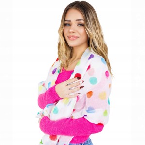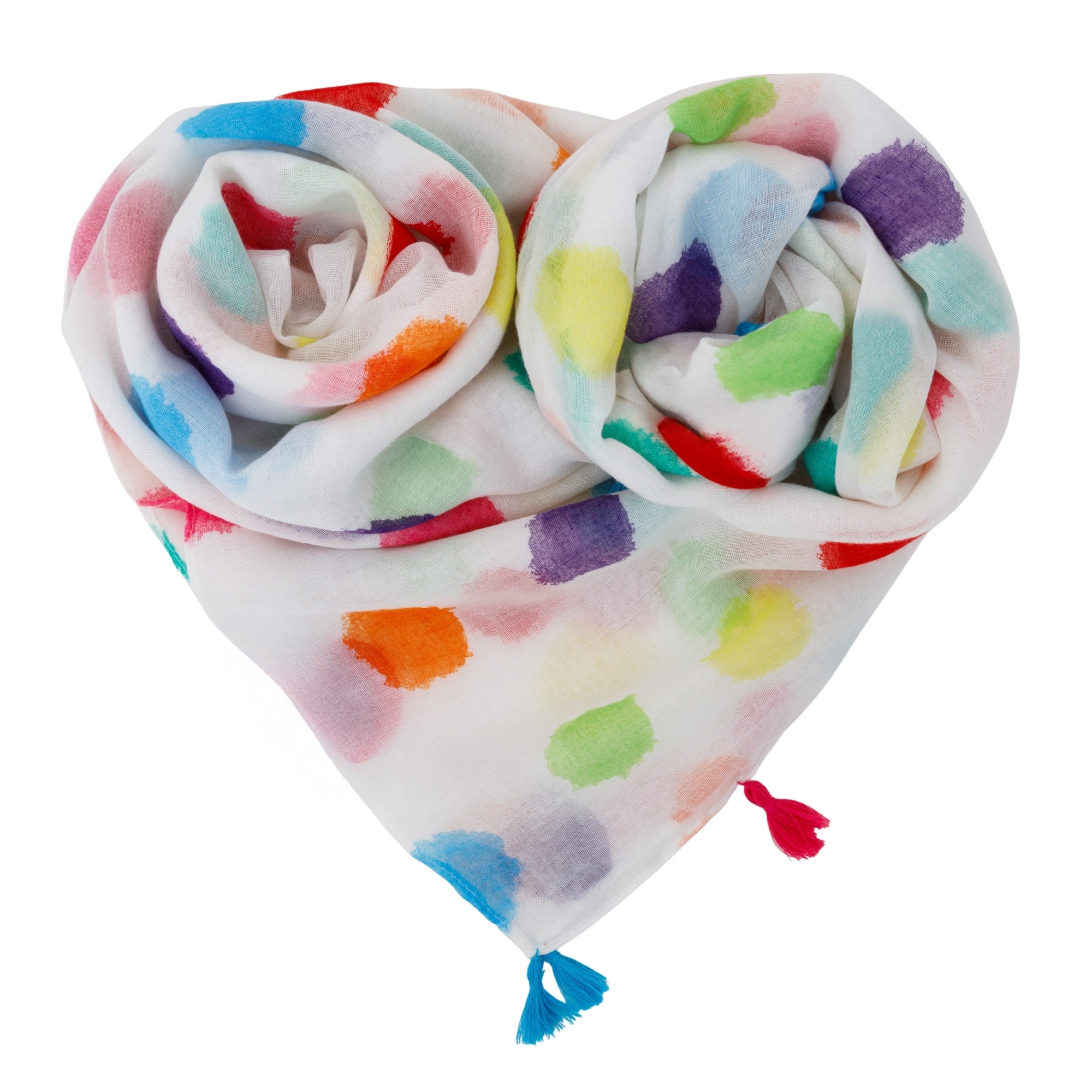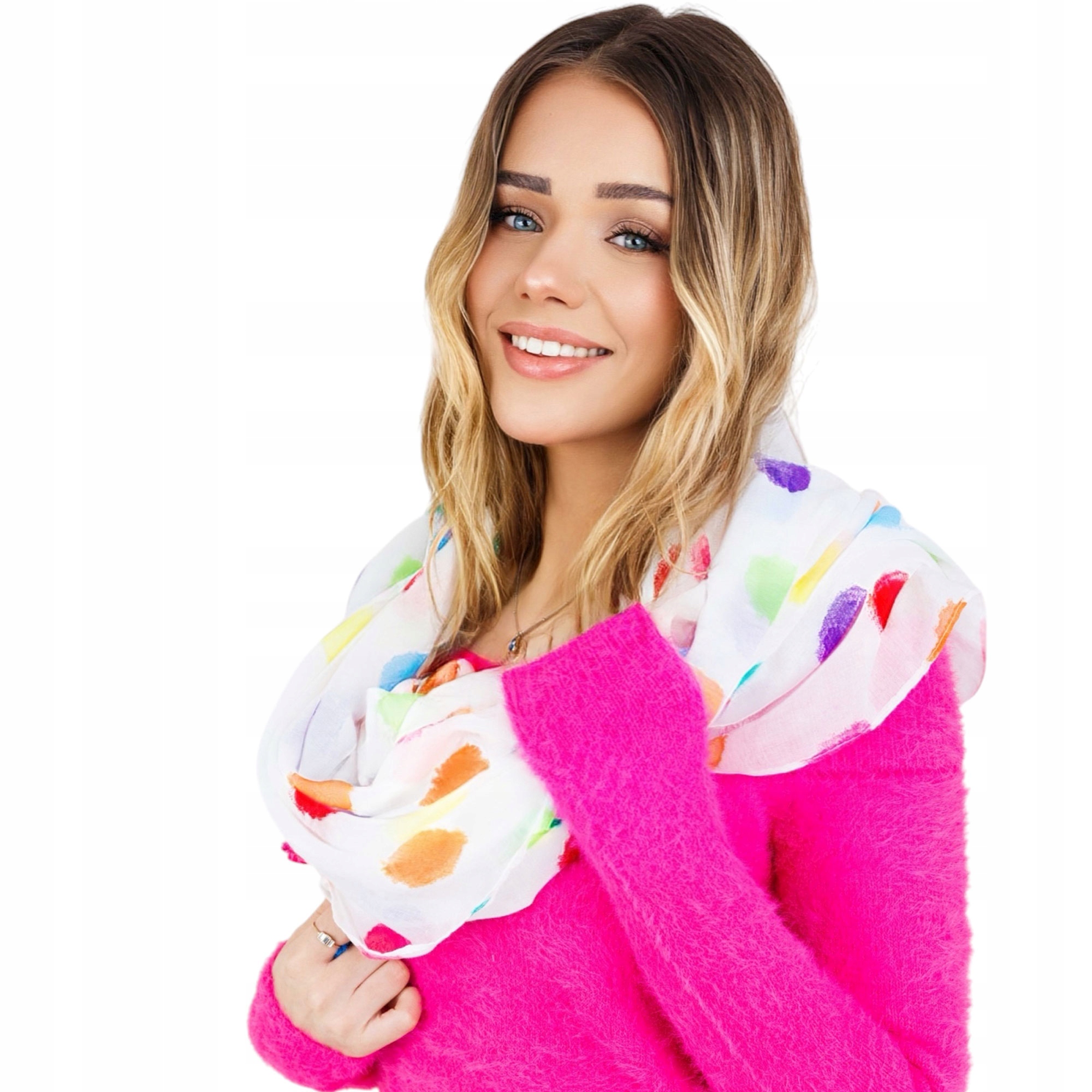 Szalik damski biały, kolorowe akwarelowe kropki lekki duży 90x180 cm